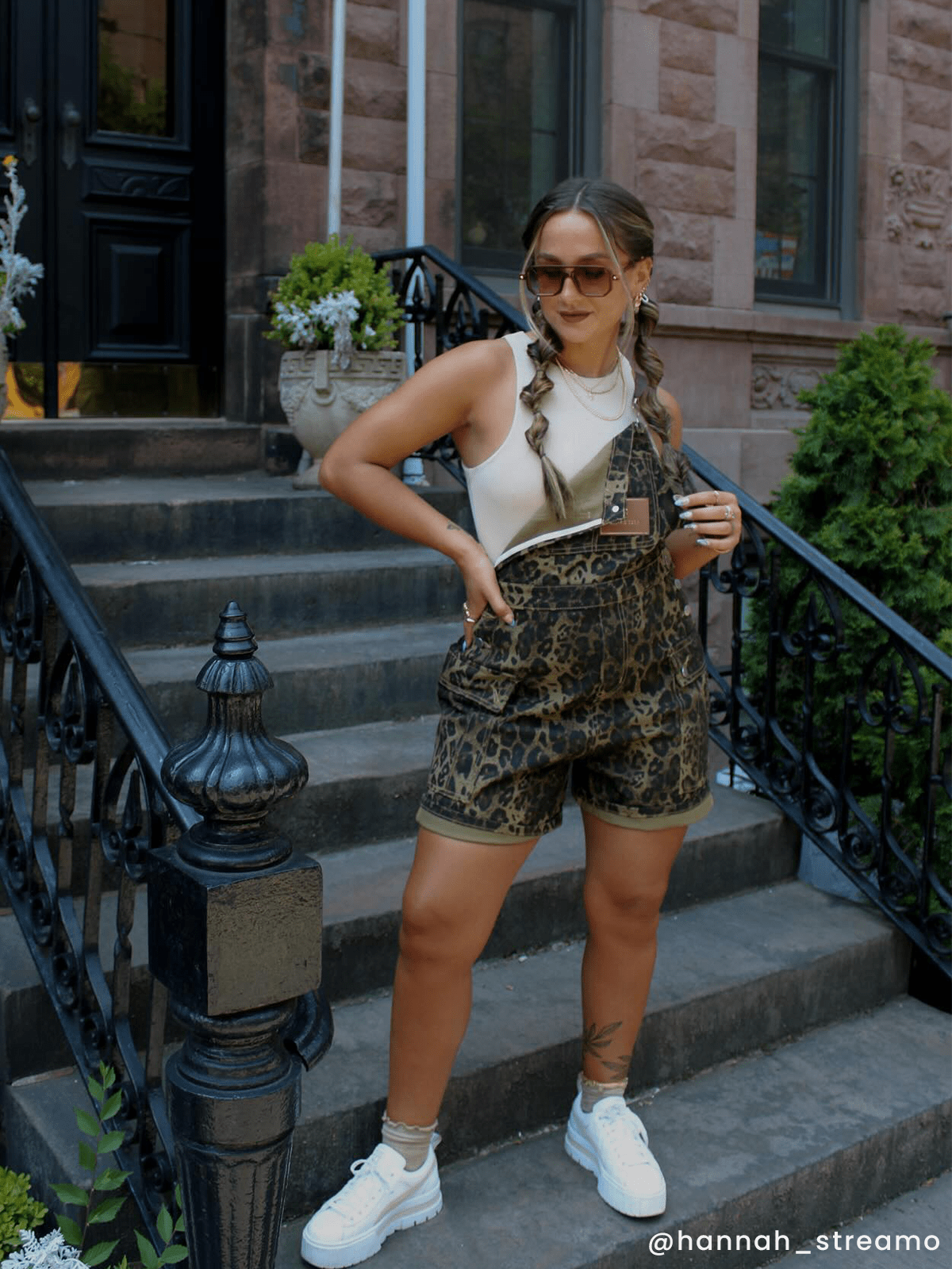 Wear Fvshya's leopard overall shorts, and you'll feel the call of the wild and the embrace of freedom. This designer masterpiece combines the allure of leopard print with contemporary design, making you a unique focal point on the fashion stage. Wearing it, you're like a free-spirited dancer chasing the wind, showcasing boundless personality and courage.