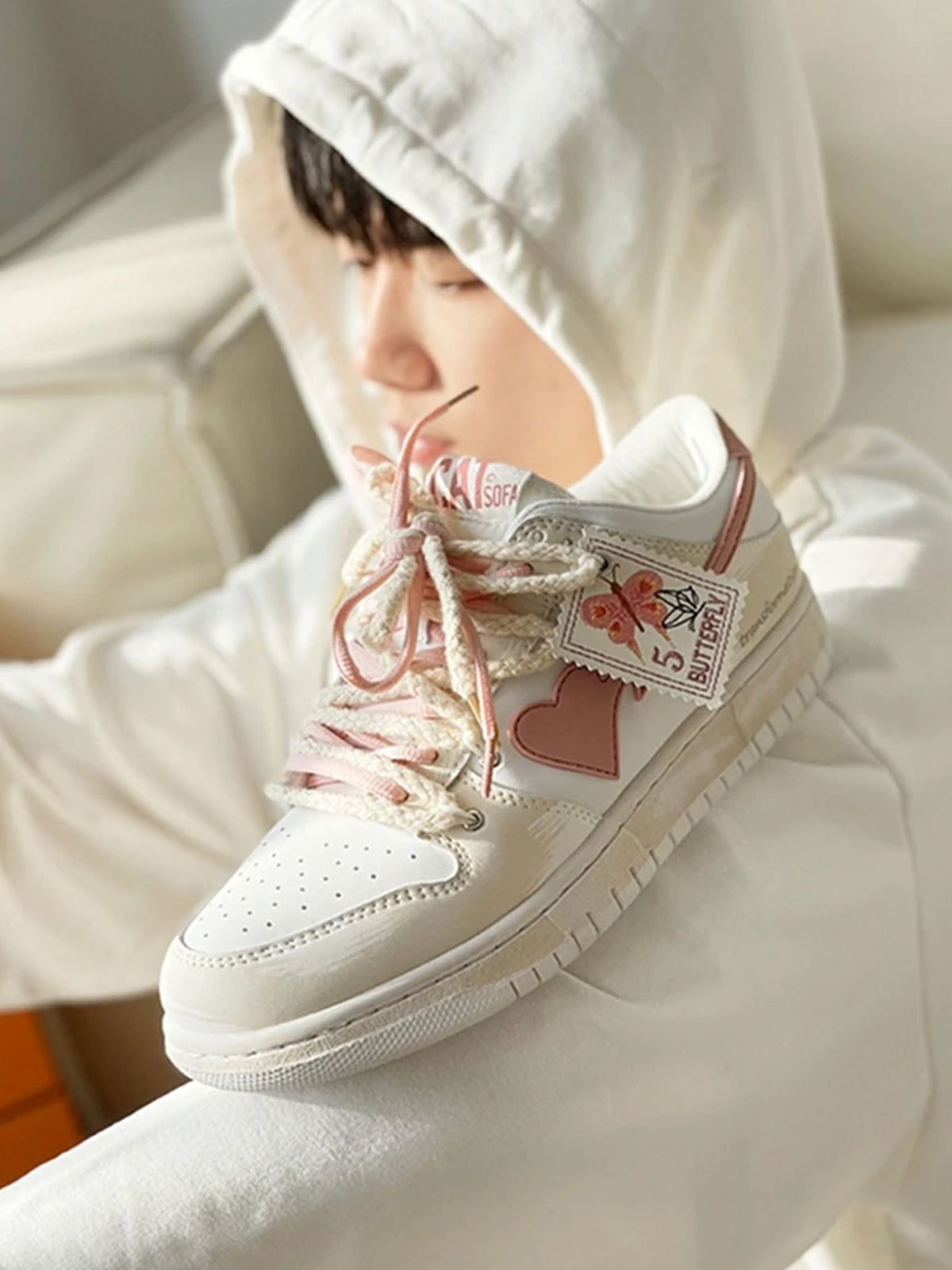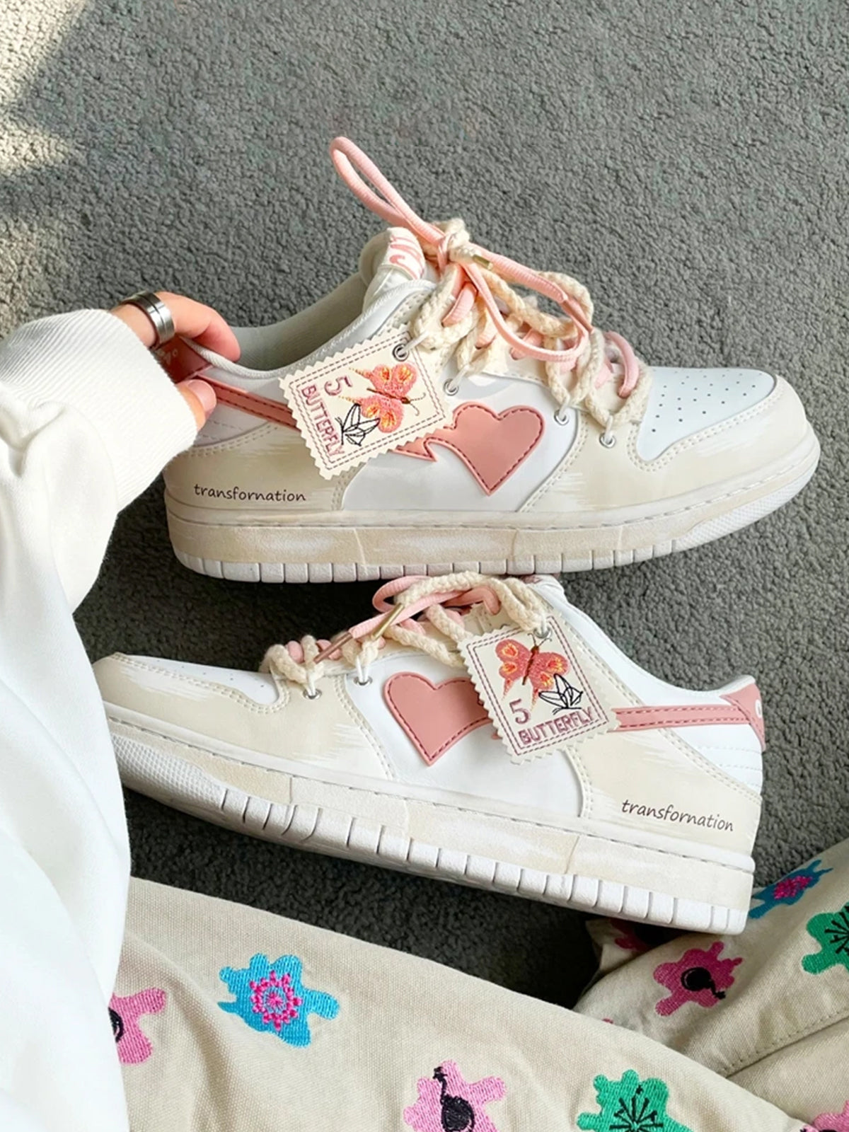 Fvshya Floating Heart Pink Butterfly Skate Shoes