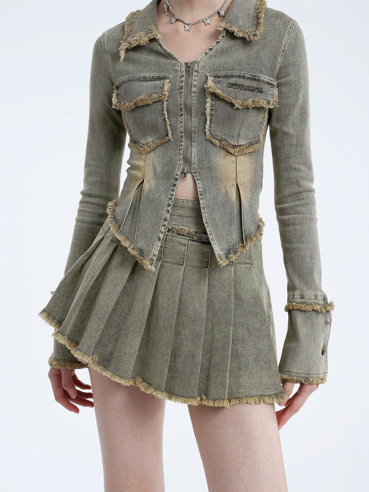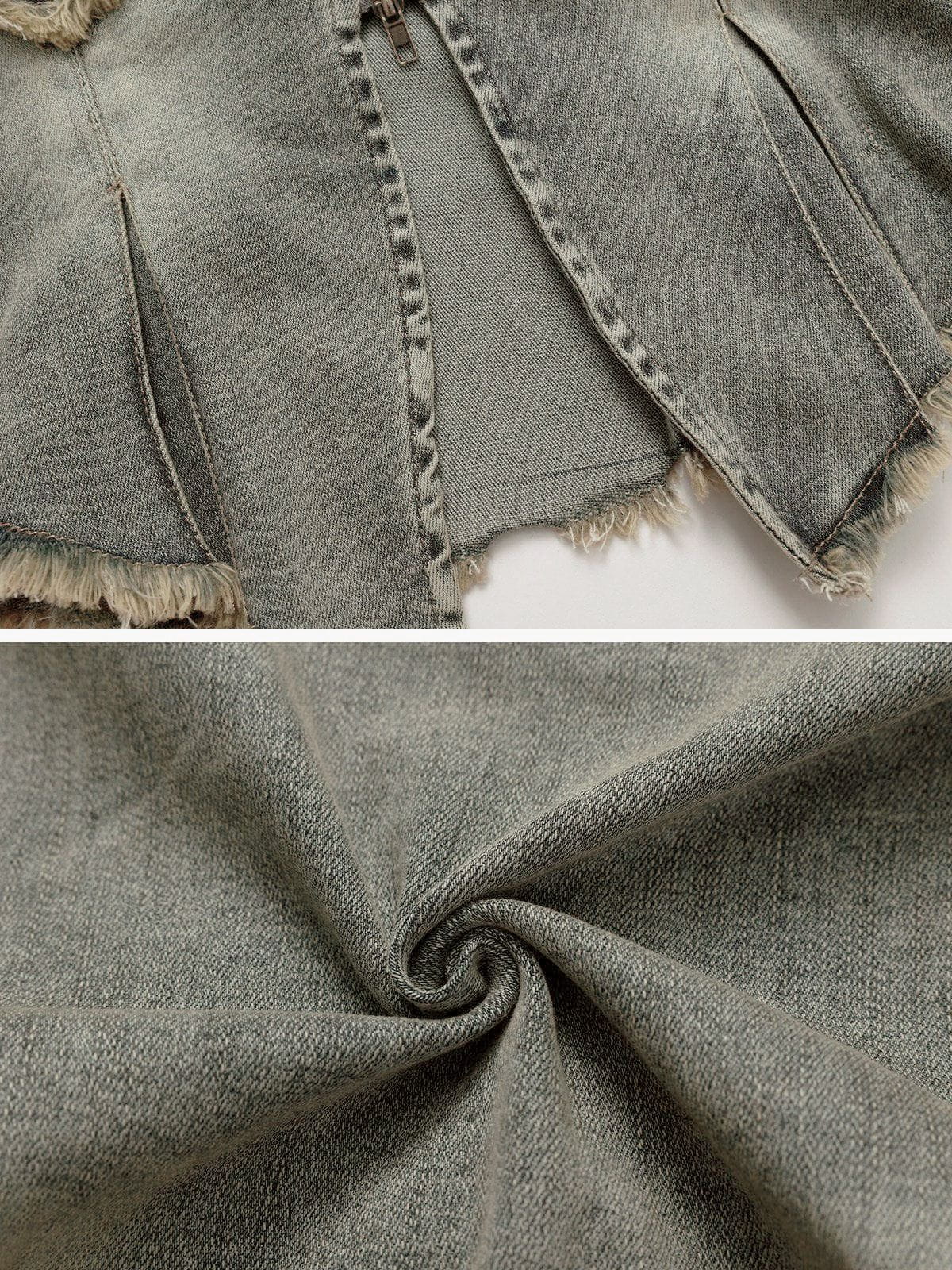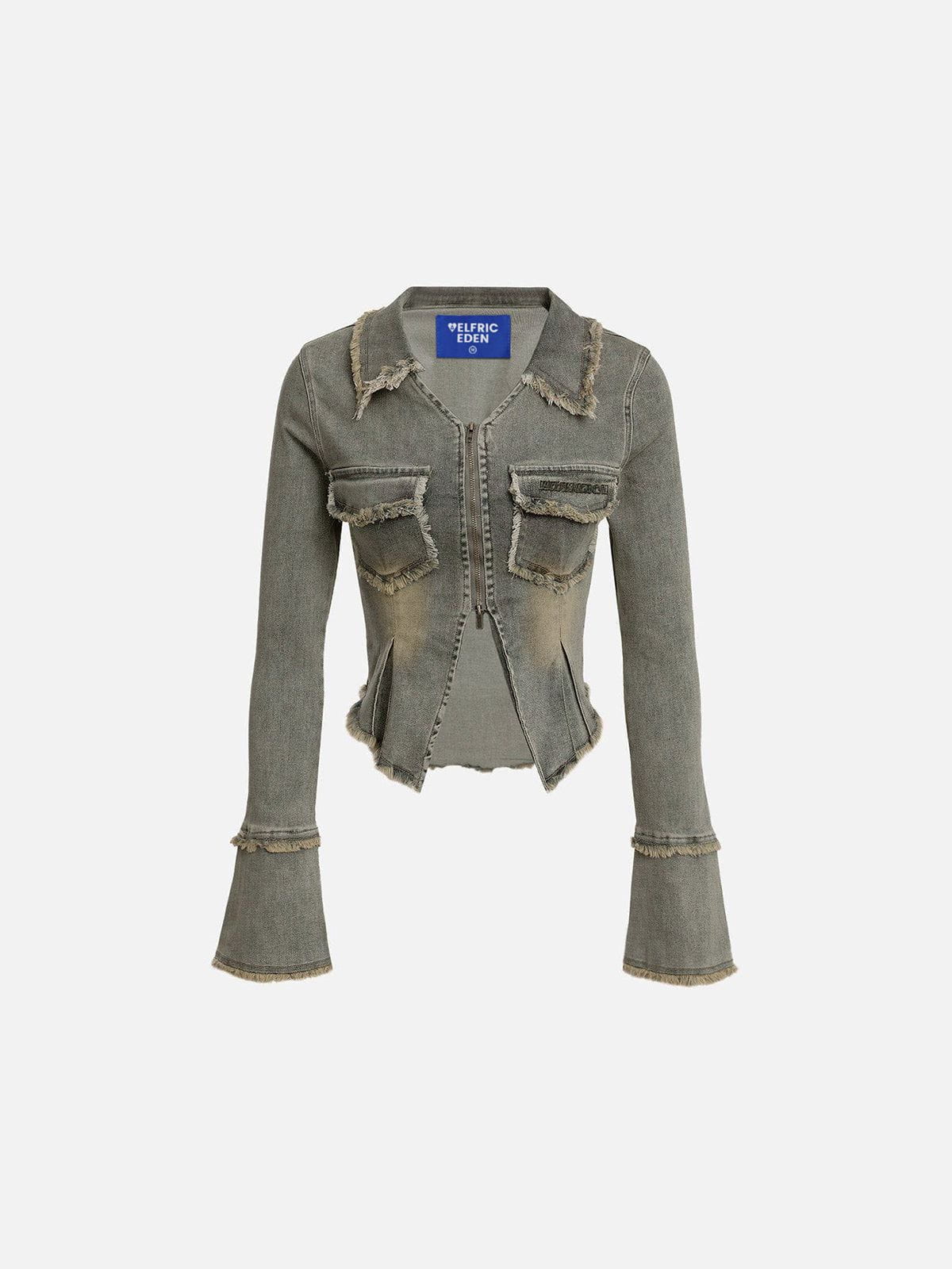 RockRock on with a fringed two-way zip denim jacket! This stylish denim jacket features a two-way zipper for the ultimate cool-girl style.