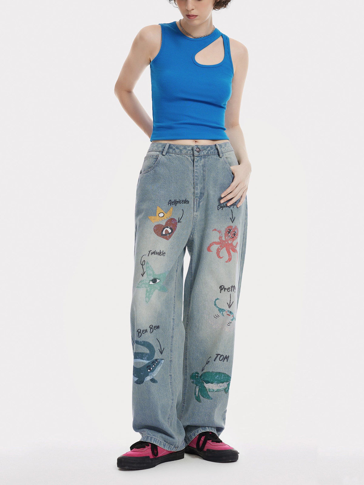 Dive into Fun with our Miracle Sea Classic Blue Jeans! Embark on a whimsical ocean adventure with these classic blue jeans, featuring playful underwater character prints and our beloved Heartie motif. Perfect for adding a splash of nautical magic to your everyday style, these jeans embody the enchanting spirit of the Miracle Sea and Fvshya's imaginative world.