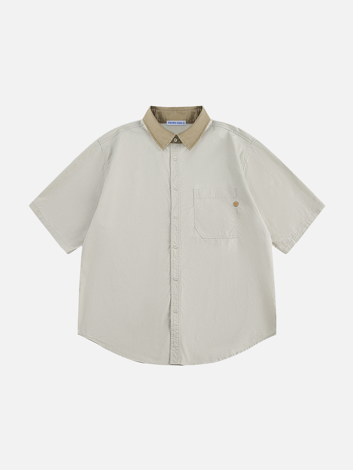 A wardrobe essential reimagined — this classic shirt features a contrasting collar for a bold yet clean look, breaking up the monotony with just the right edge. Its chest patch pocket adds utility without compromising simplicity. Ideal for effortless everyday style with a twist.