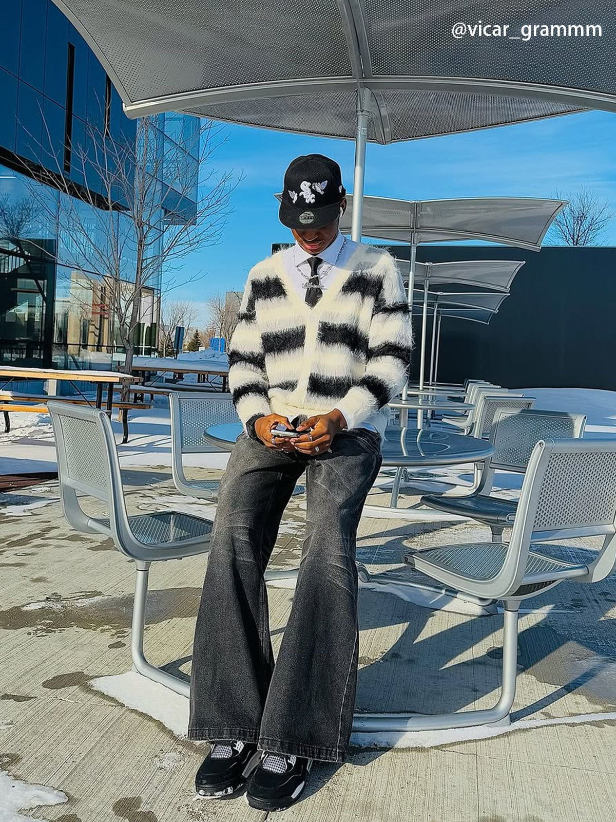 Fvshya Color Block Striped Fuzzy Cardigan