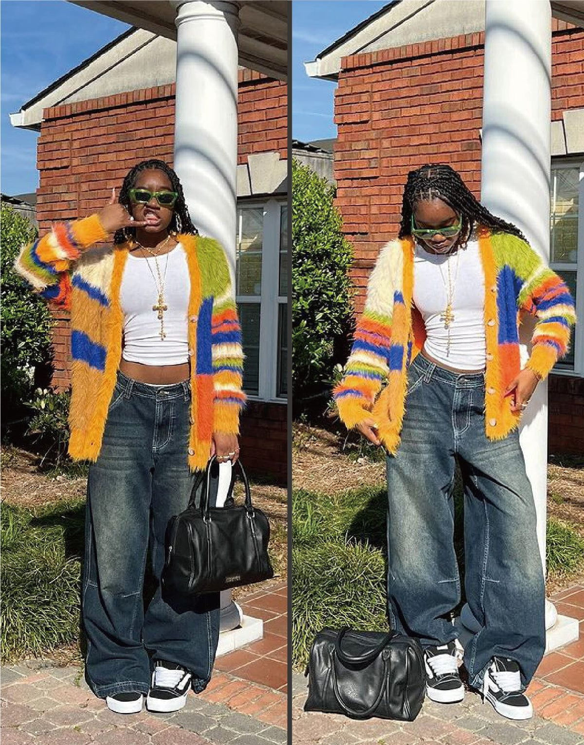 Carry a bowl of sunshine on your back with this ultra-cozy Fvshya Contrast Color Block Cardigan! This candy-inspired cardigan is as colorful as a bear's picnic basket and as warm and sweet as a bowl of honey. Wrap yourself up in deliciousness!