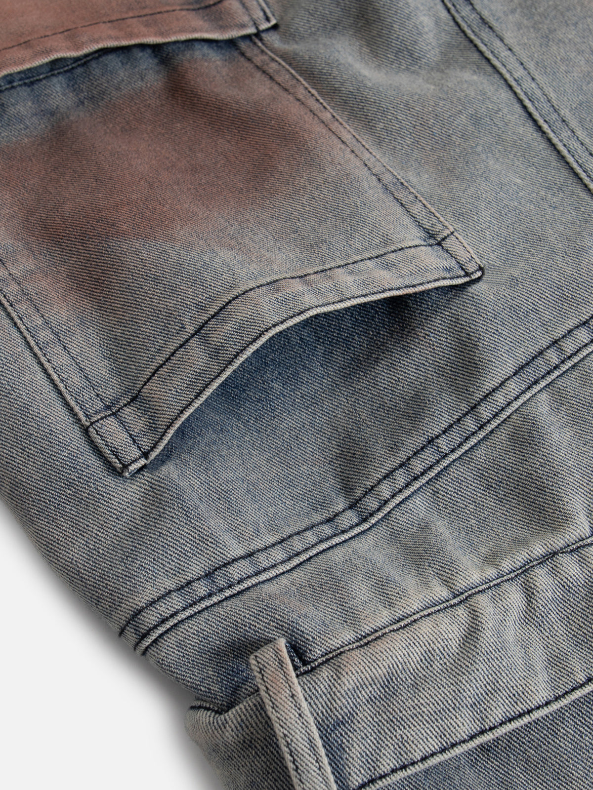 Featuring a bold earthy gradient design for a unique faux old-world aesthetic. The double waist detailing adds a striking layering effect and a modern twist to the classic silhouette. Perfect for those seeking a casual yet stylish look, these jeans bring an urban rugged vibe to your closet.