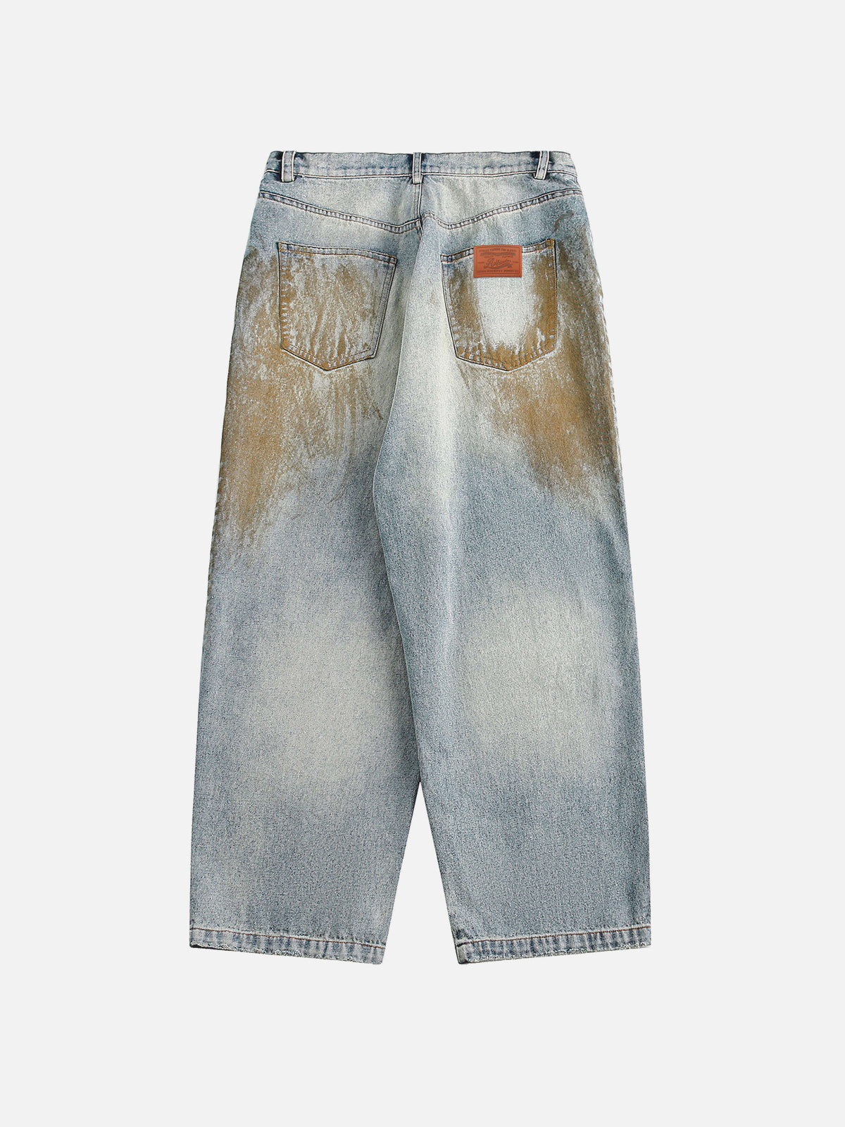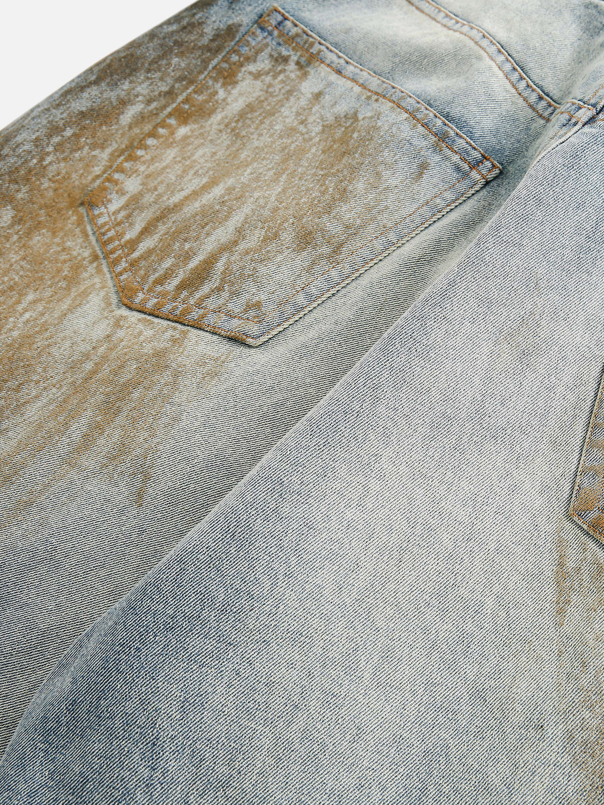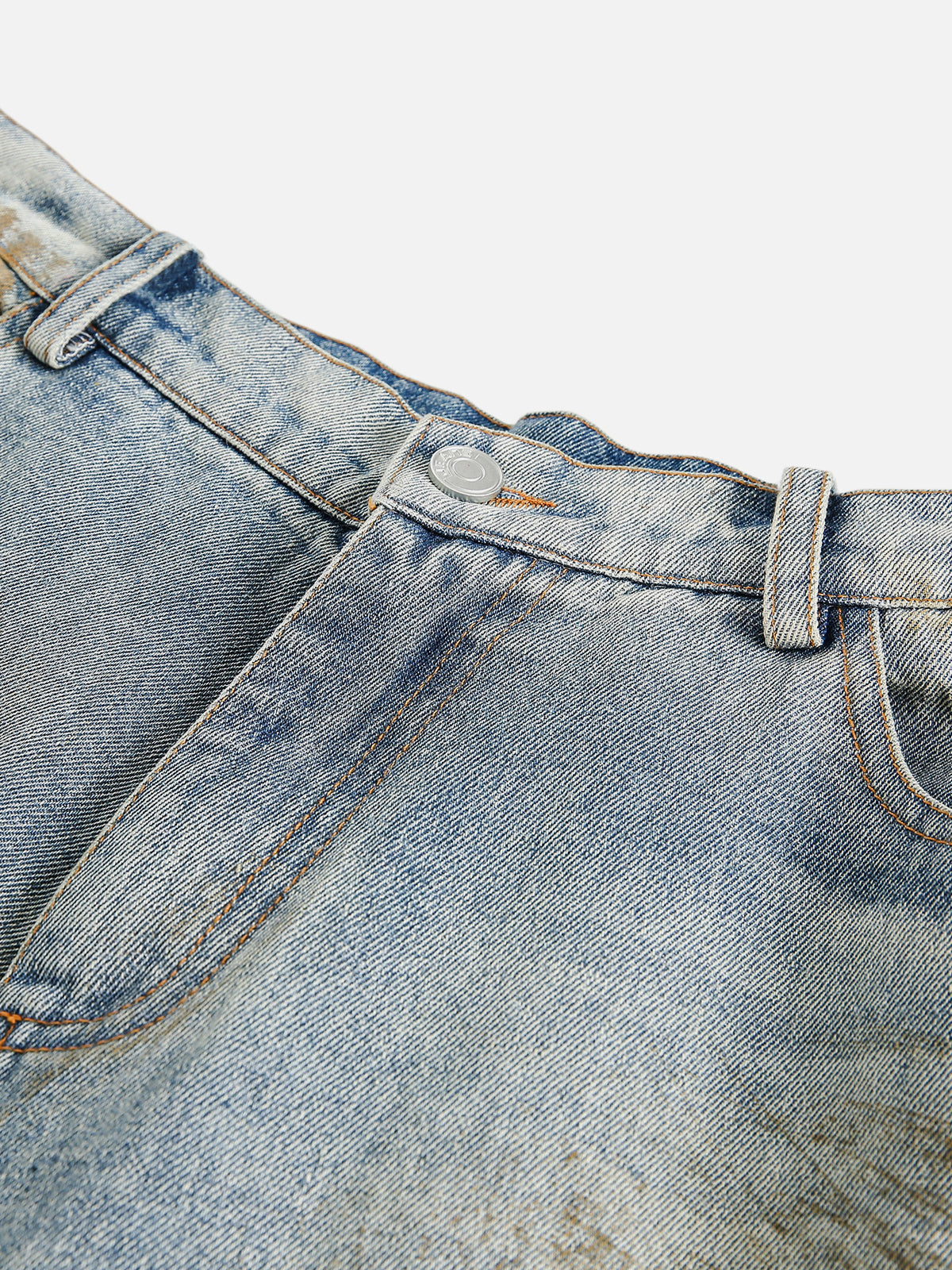 Featuring a unique mud-colored wash process, it creates an urban, distressed look that exudes casual coolness. The relaxed fit is comfortable and casual. Artistic distressed details add a vintage vibe, making these jeans the perfect piece for a casual-chic look.