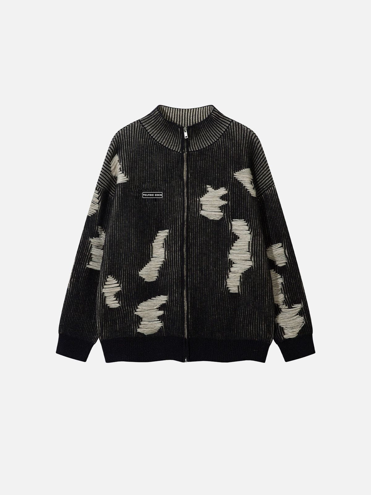 With a rugged, distressed design, zip-up closures and ribbed texture, it's a fusion of streetwear and rock, and the neutral color palette makes it perfect for layering. This piece is an easy way to elevate casual wear.