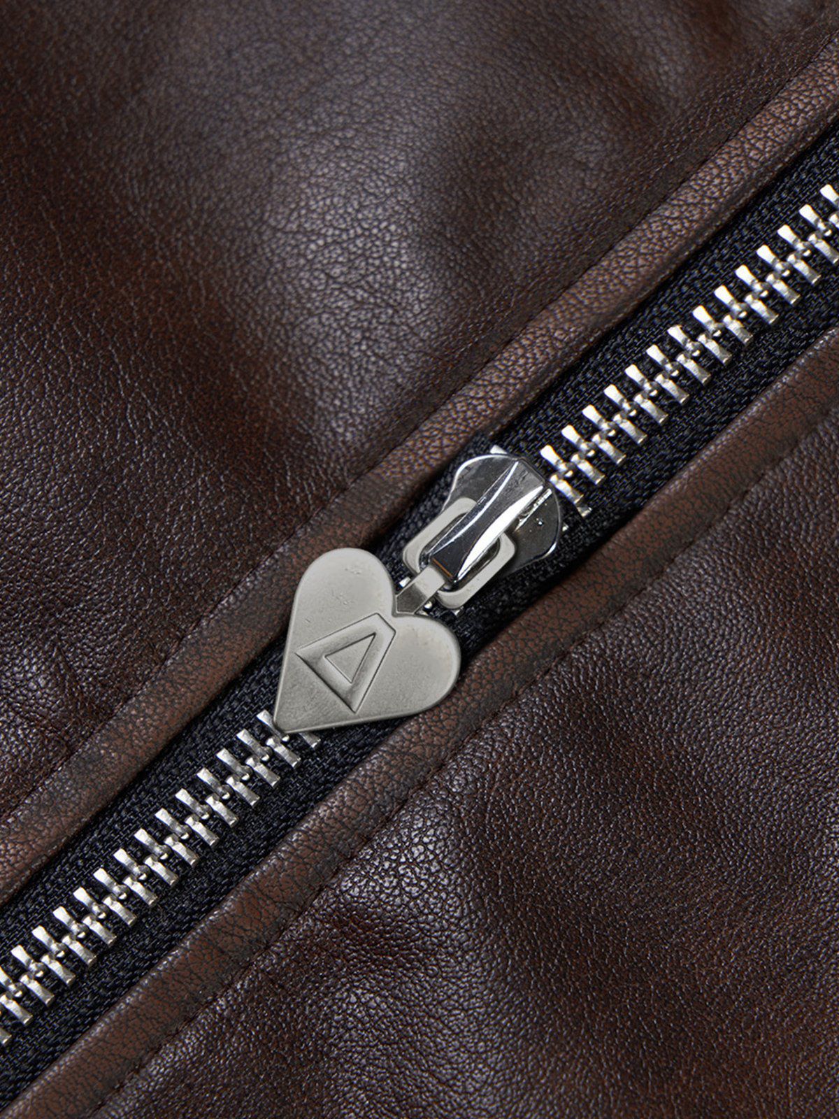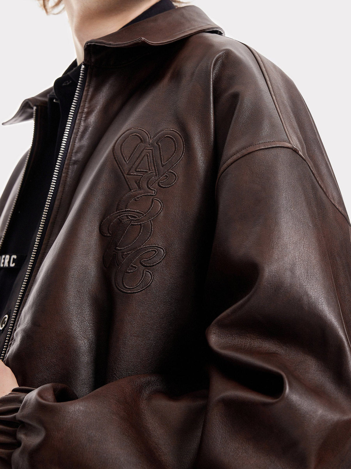 Fvshya Embroidery Fold-Over Faux Leather Jacket