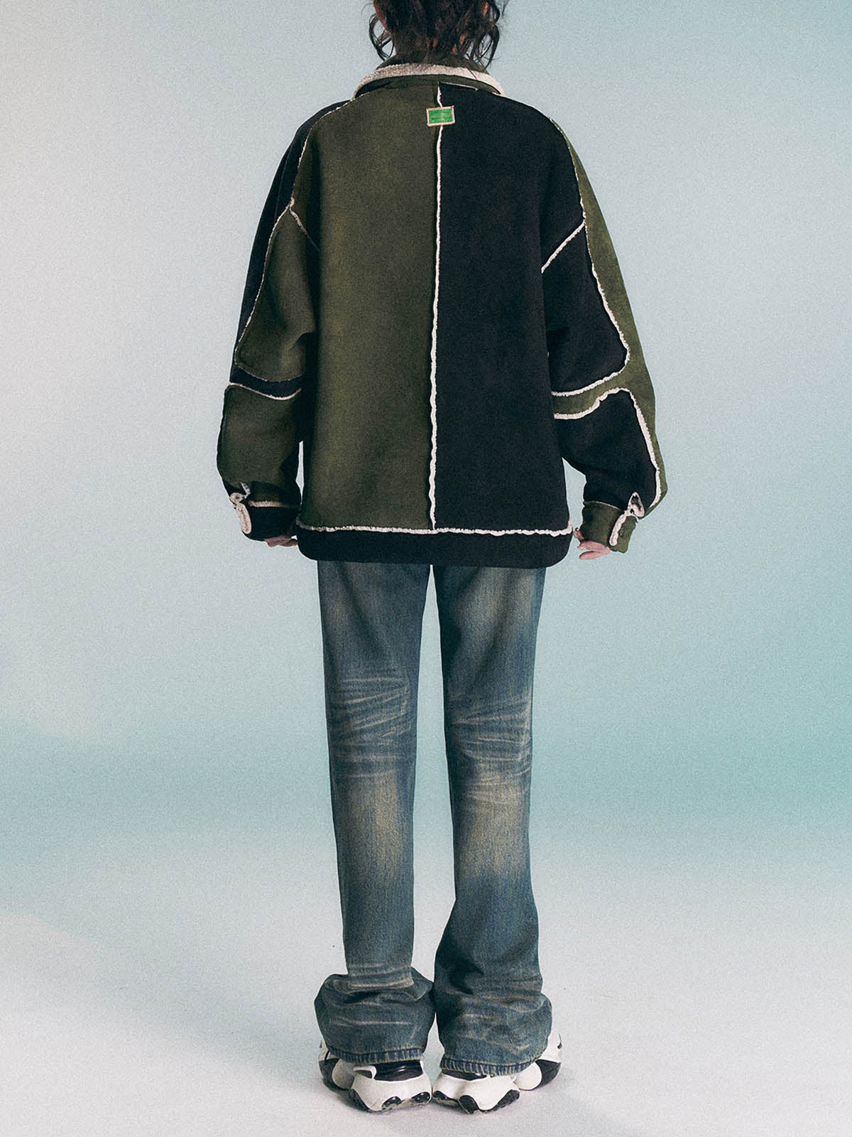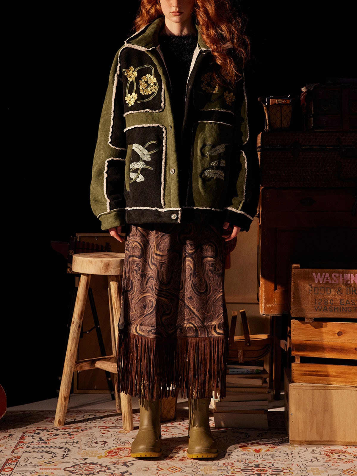Fvshya Floral Embroidered Suede Fleece Jacket
