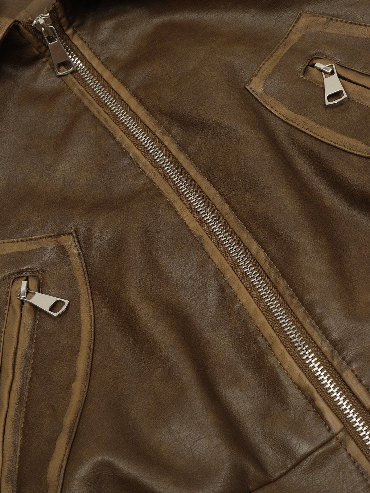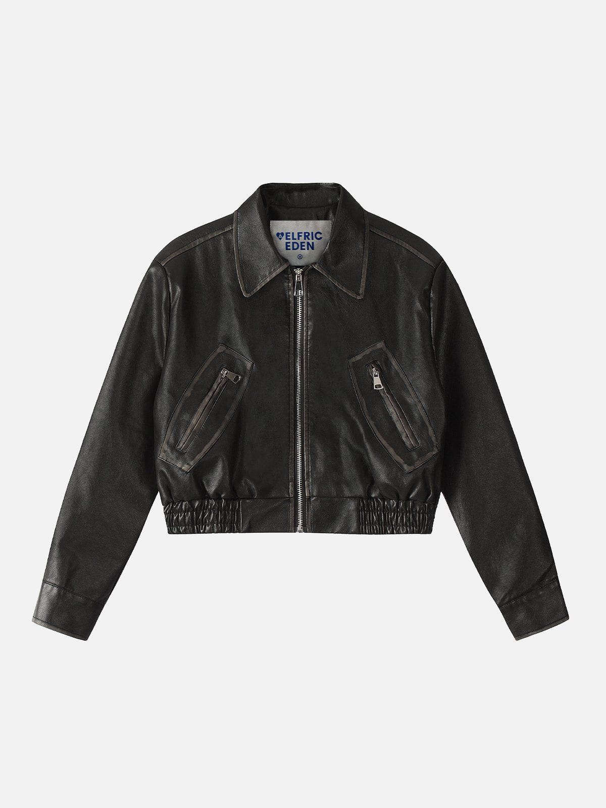 Fvshya Fold-Over Cropped Faux Leather Jacket