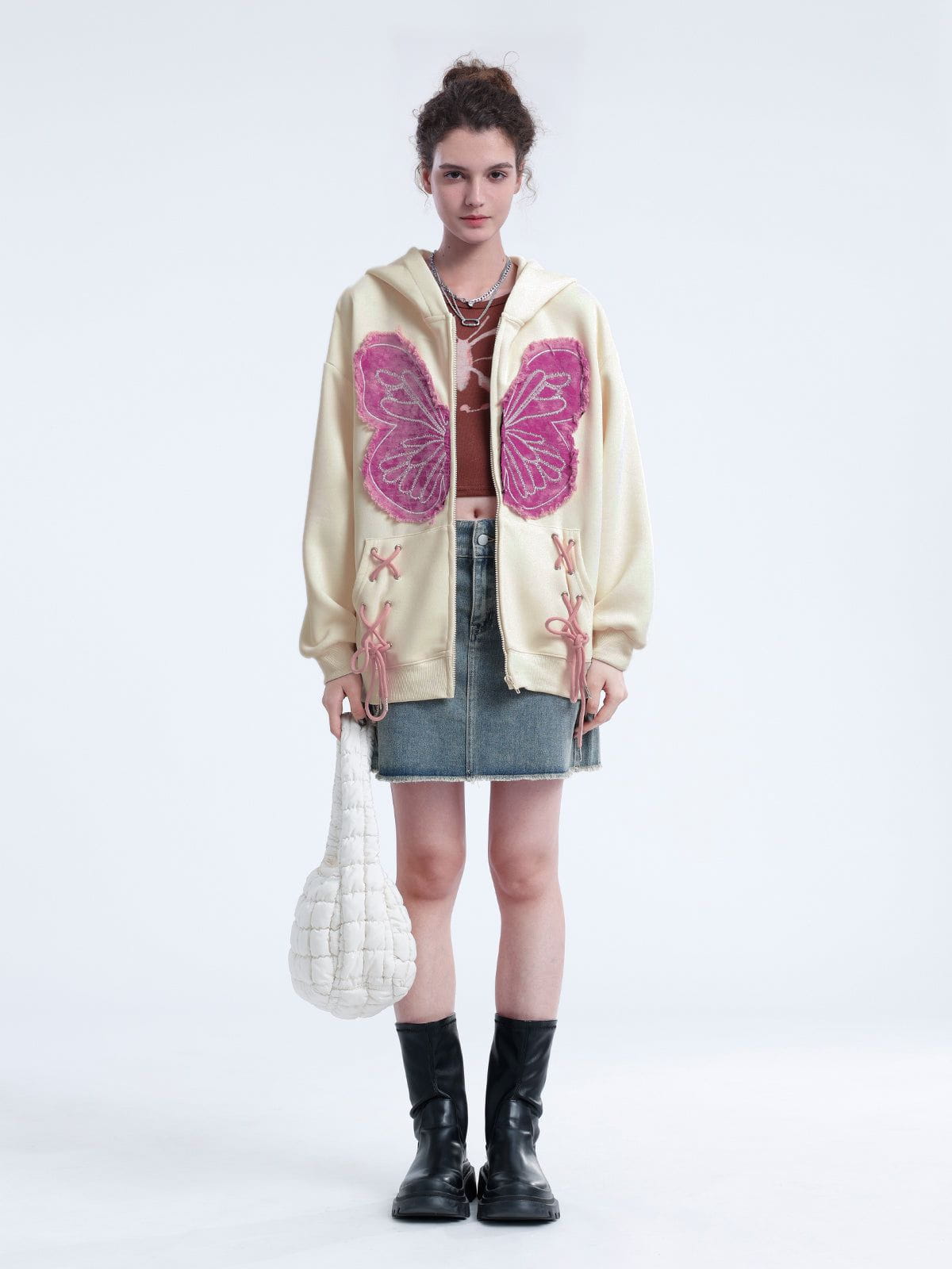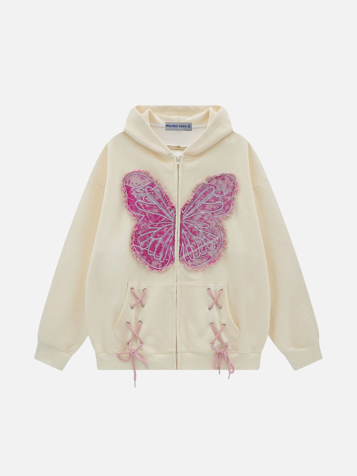 Fvshya Fringe Washed Butterfly Zip Up Hoodie
