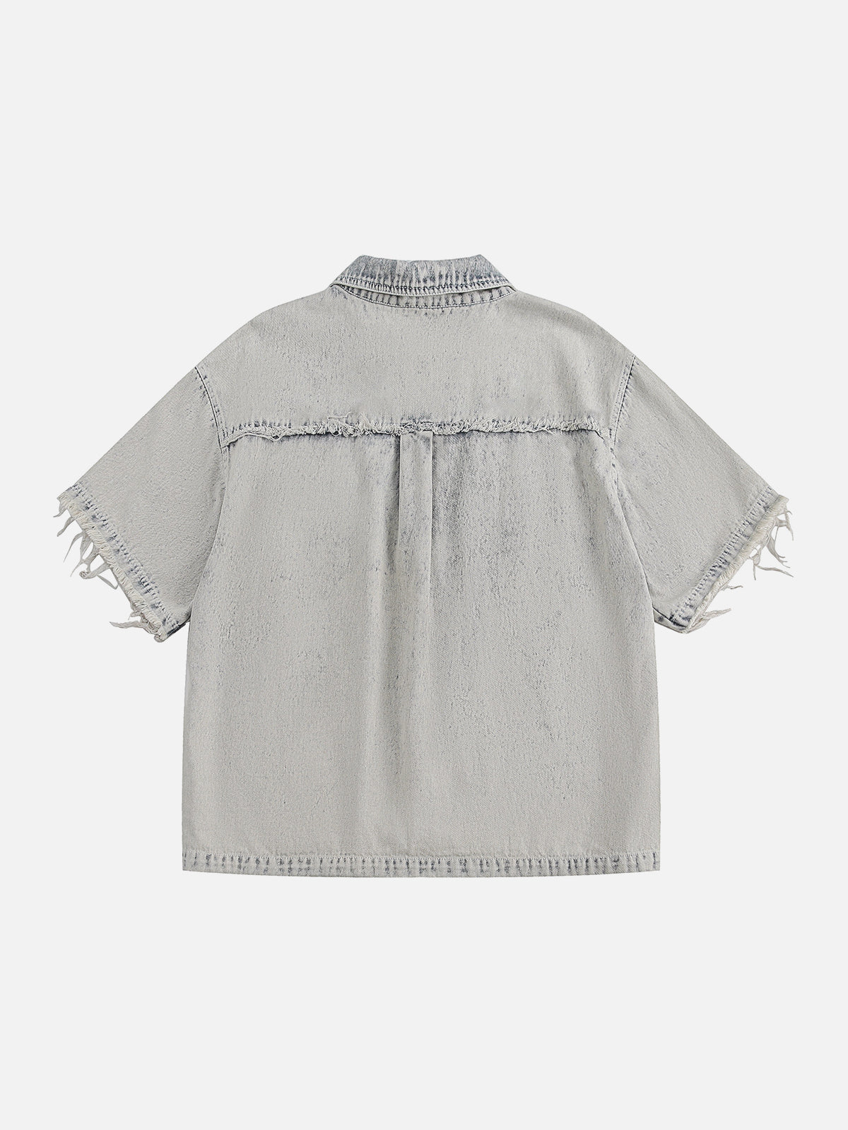 Fvshya Fringe Washed Denim Short Sleeve Shirt