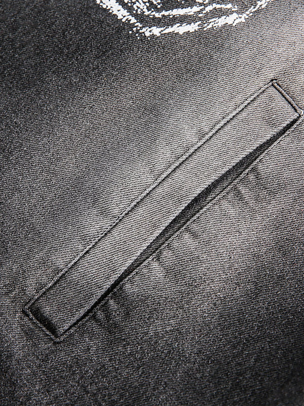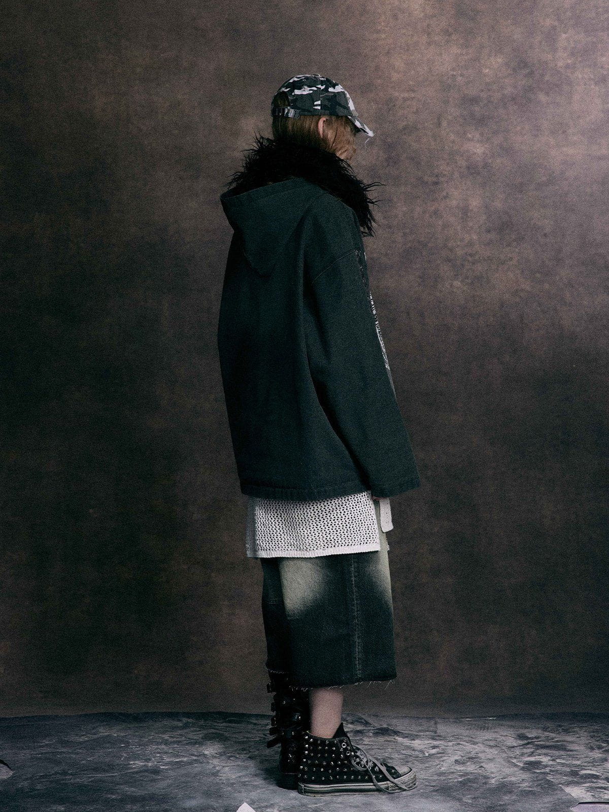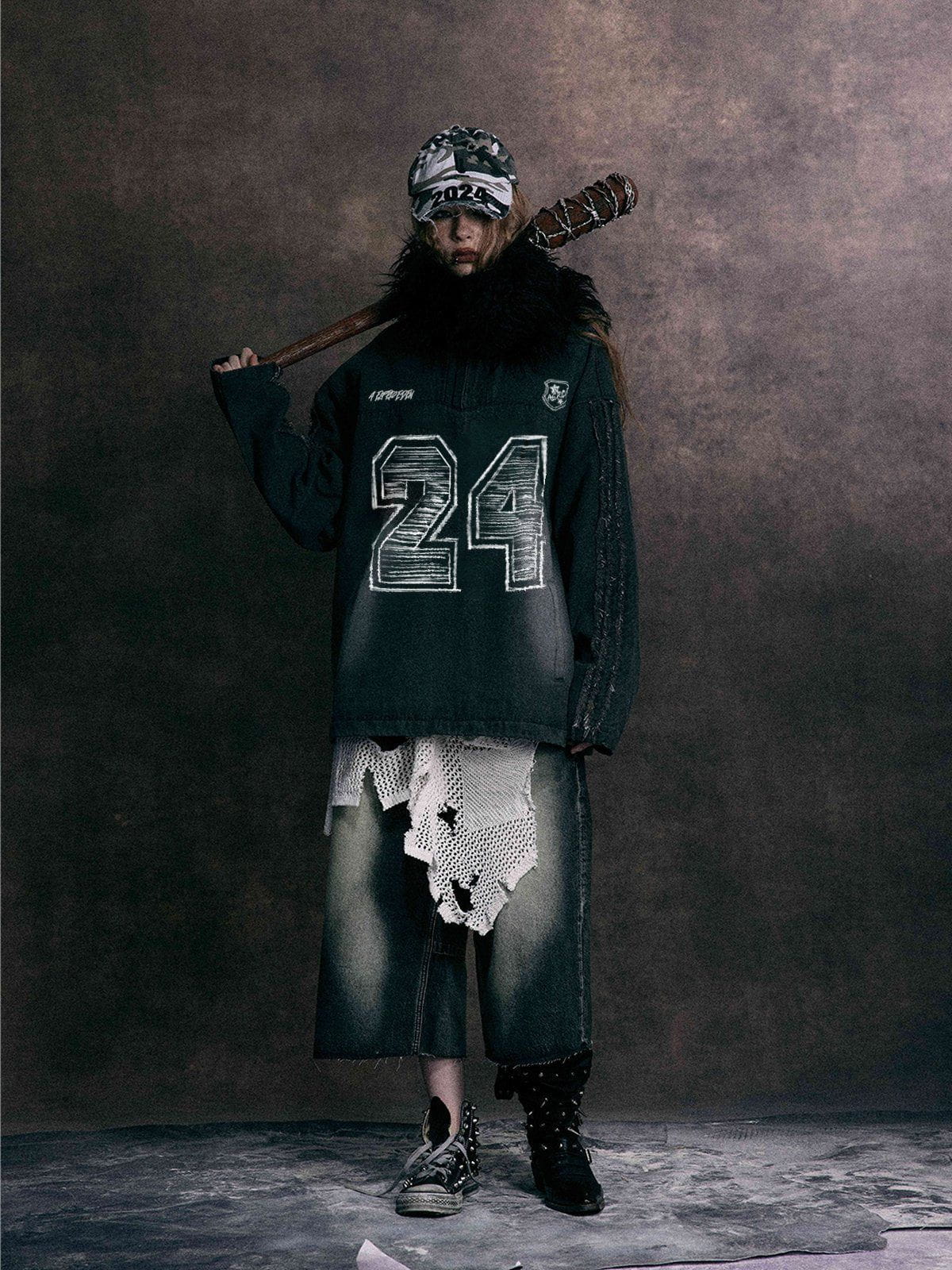 This hoodie features a heavily washed texture that brings a street-inspired edge, highlighted by a bold numerical print at the center. The fringe detail runs from the cuffs to the shoulders, adding a raw and artistic flair. It perfectly combines laid-back comfort with a trendy street style.