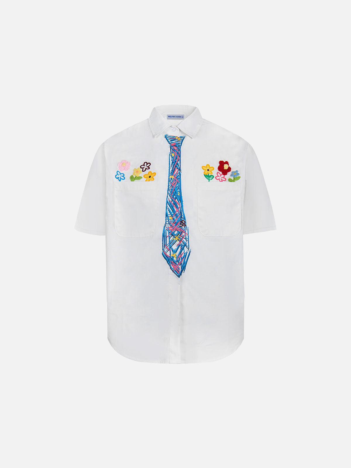 Fvshya Graffiti Necktie Short Sleeve Shirt