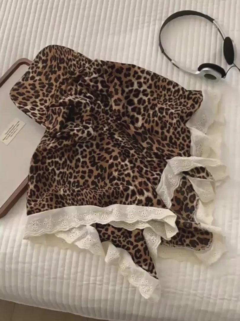 Fvshya Leopard Graphic Lace Patchwork Cap