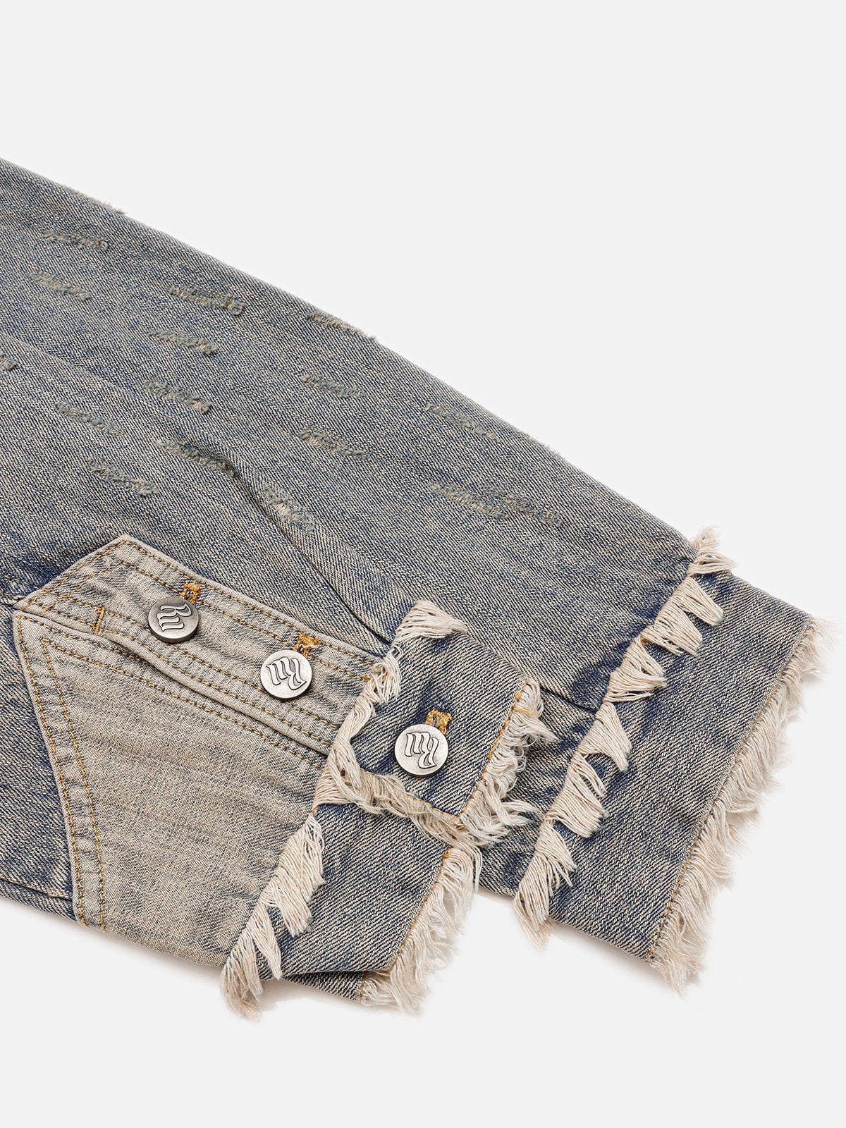 Step up your streetwear game with this edgy hoodie, featuring washed denim paneling for a bold, contrasting look. The color-block design adds a fresh twist, while the raw, frayed edges bring a touch of distressed charm.