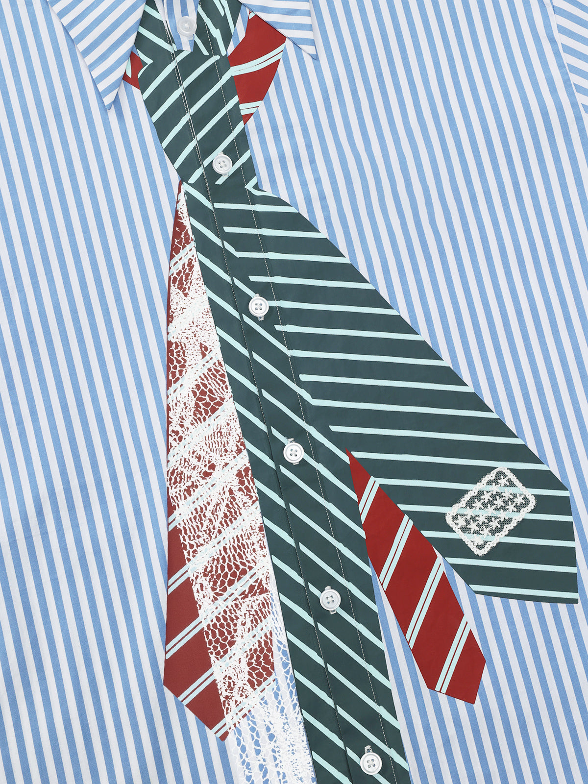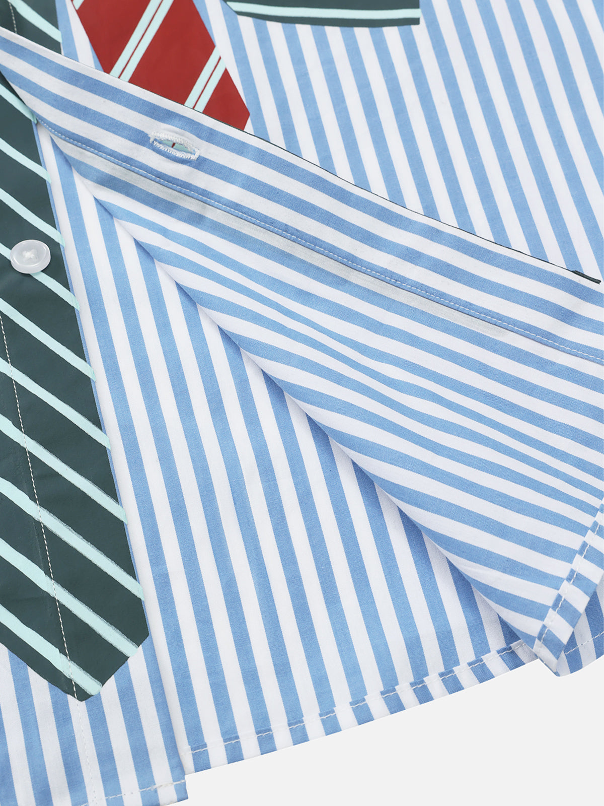 Featuring a unique necktie print and bold stripes, this shirt is perfect for adding a touch of fun to your wardrobe. Stand out from the crowd and make a statement with this playful and stylish piece.