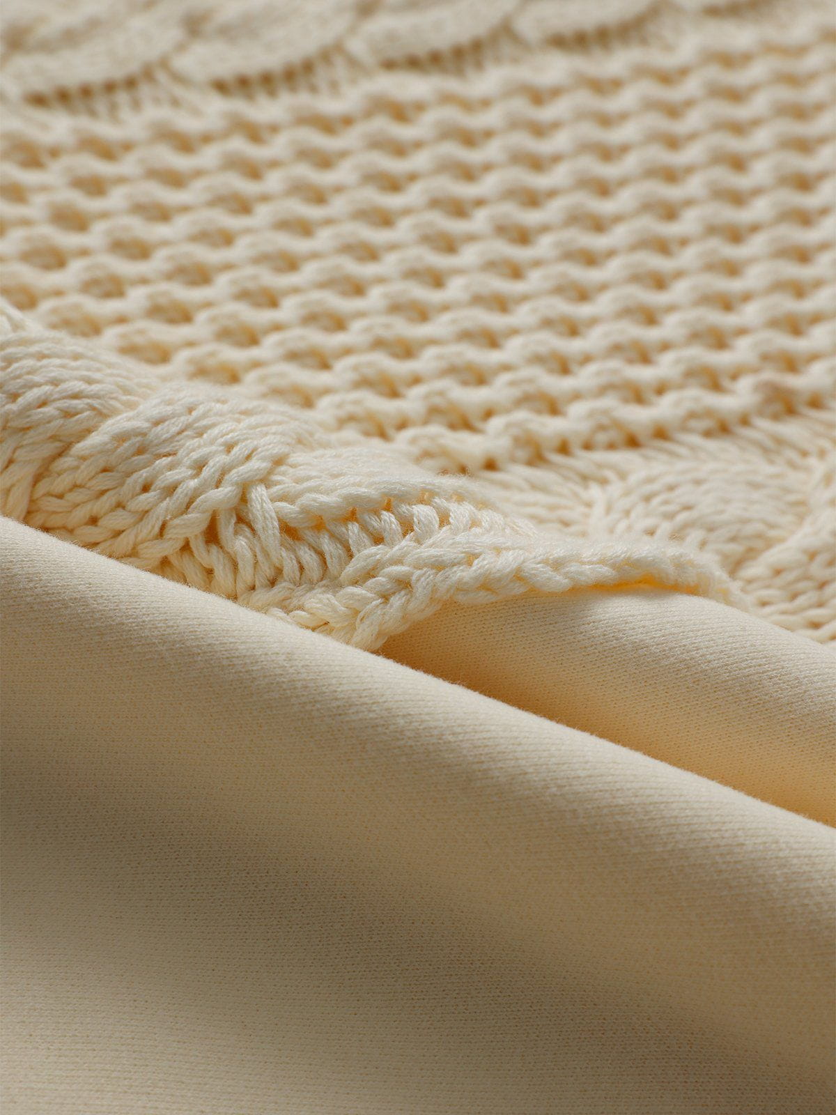 Embrace Timeless Charm with our Mushroom Village Cable Knit Sweater! This classic white cable knit sweater, featuring intricate weaving and a simple silhouette, is adorned with an embroidered Heartie motif. Combining traditional design with a touch of whimsical charm, it perfectly captures the enchanting spirit of Fvshya's Mushroom Village. Ideal for adding cozy elegance to your everyday wardrobe.