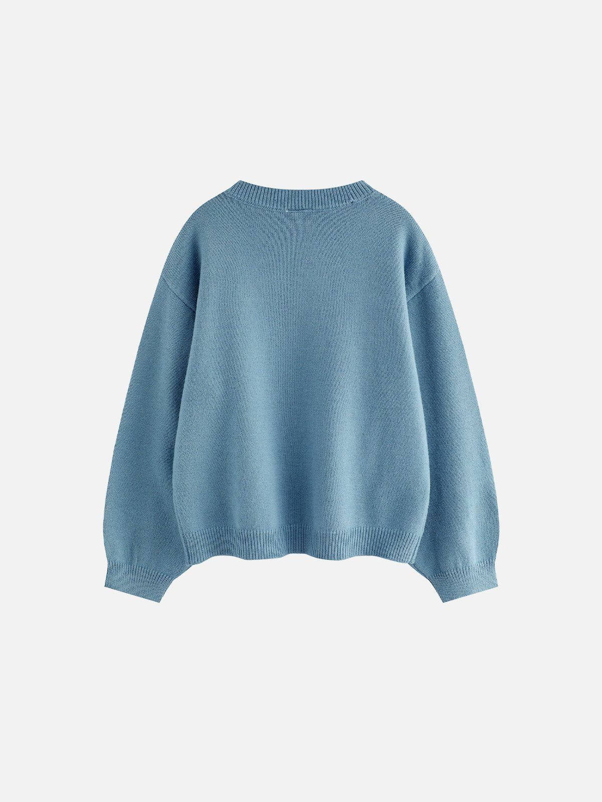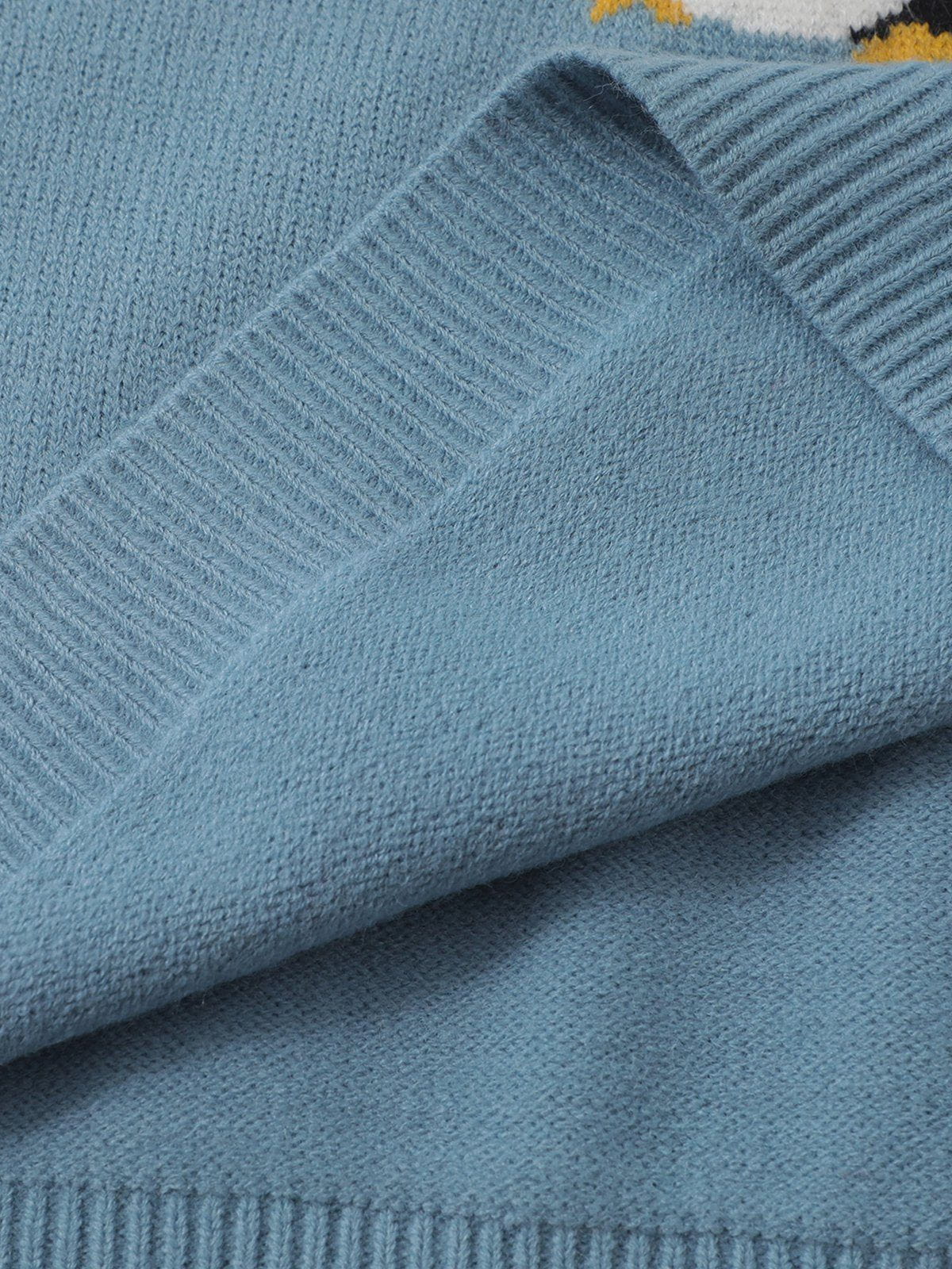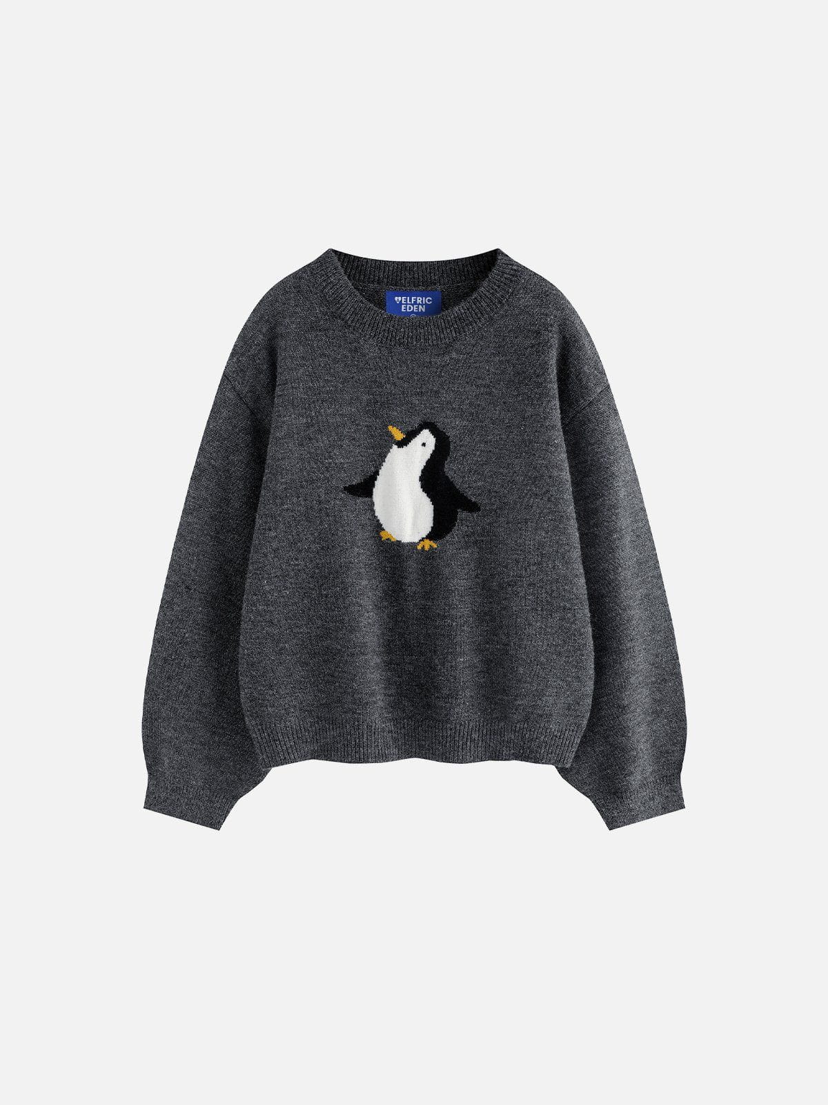 This cozy cropped sweater features an adorable penguin graphic at its center, adding a playful touch to the soft blue knit. The relaxed fit and ribbed cuffs ensure comfort and warmth, making it perfect for chilly days. A cute and quirky statement piece to brighten up any casual outfit.