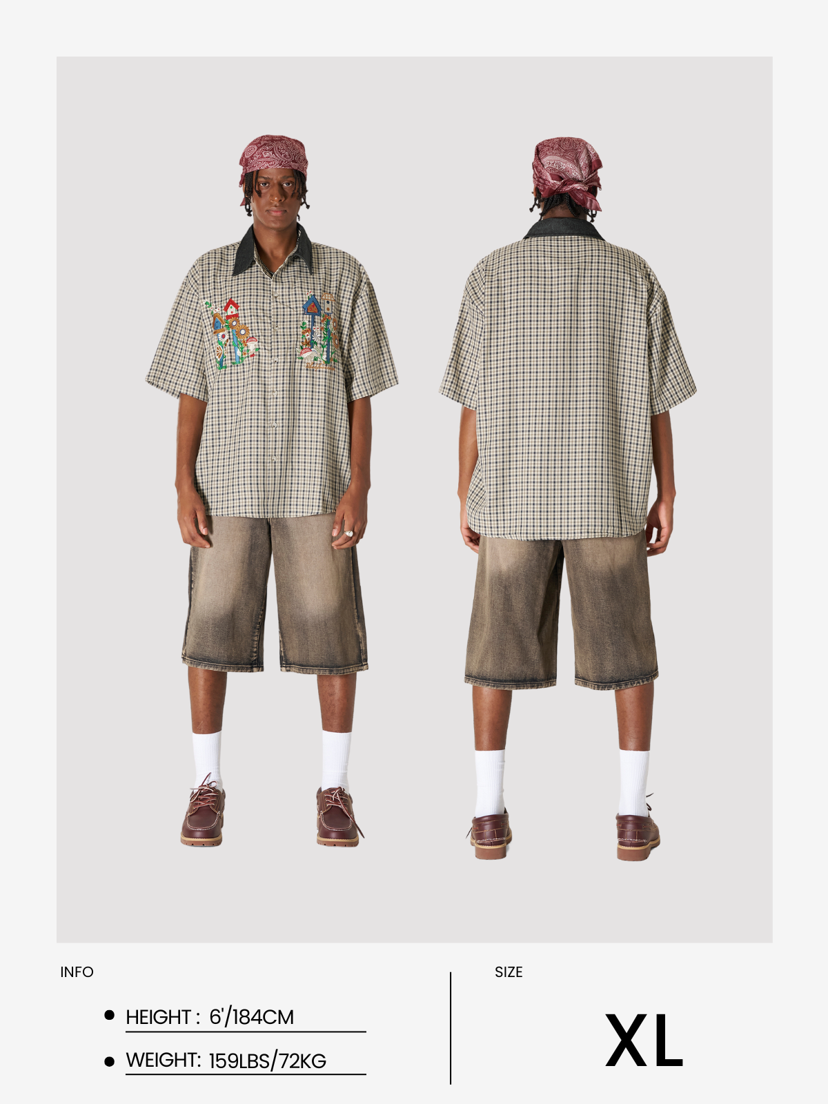 The Plaid Embroidery Short Sleeve Shirt features a classic plaid pattern with intricate embroidery, adding a unique twist to a timeless design. Its lightweight fabric and short sleeves make it a comfortable choice for casual, everyday wear.