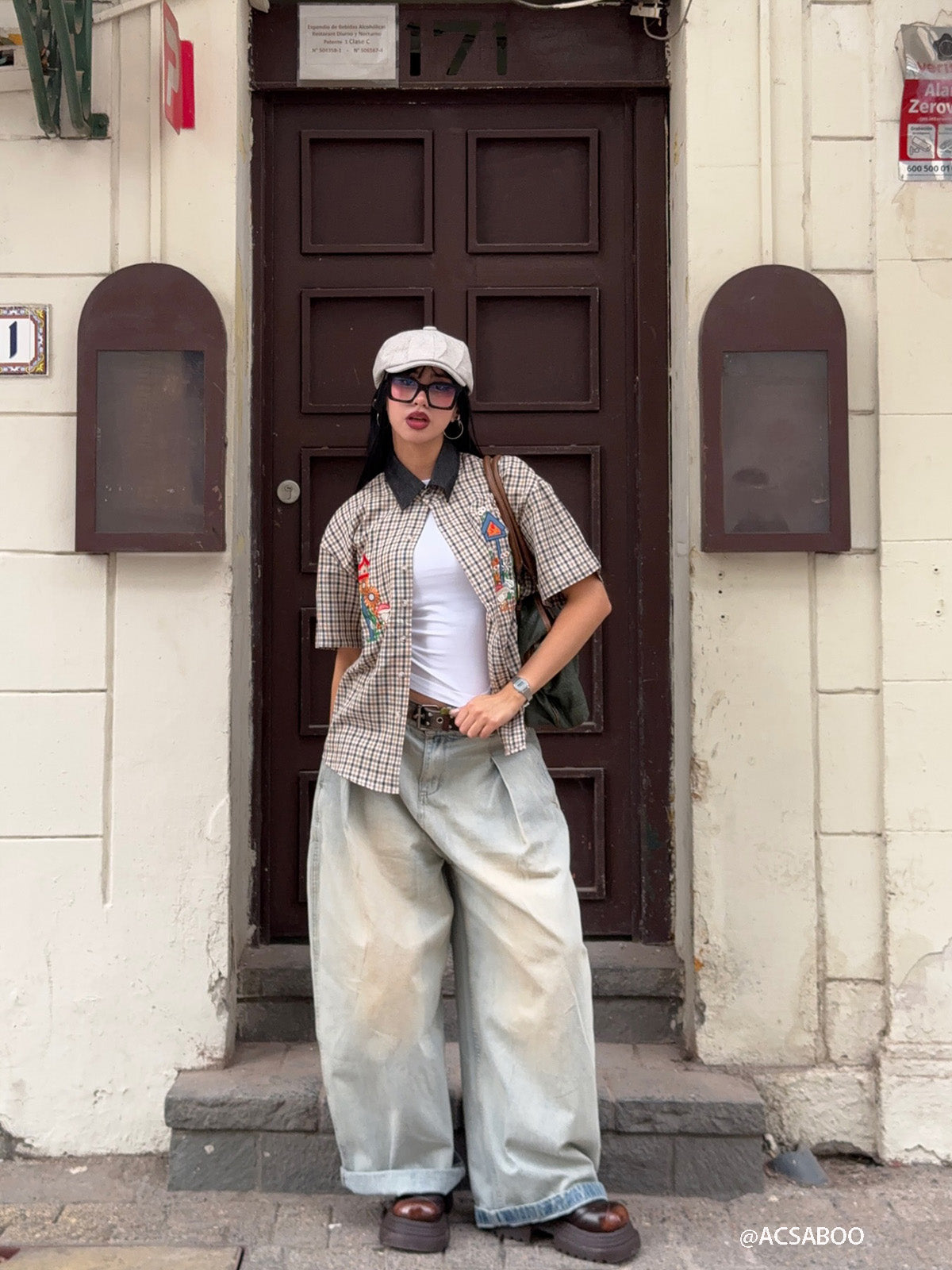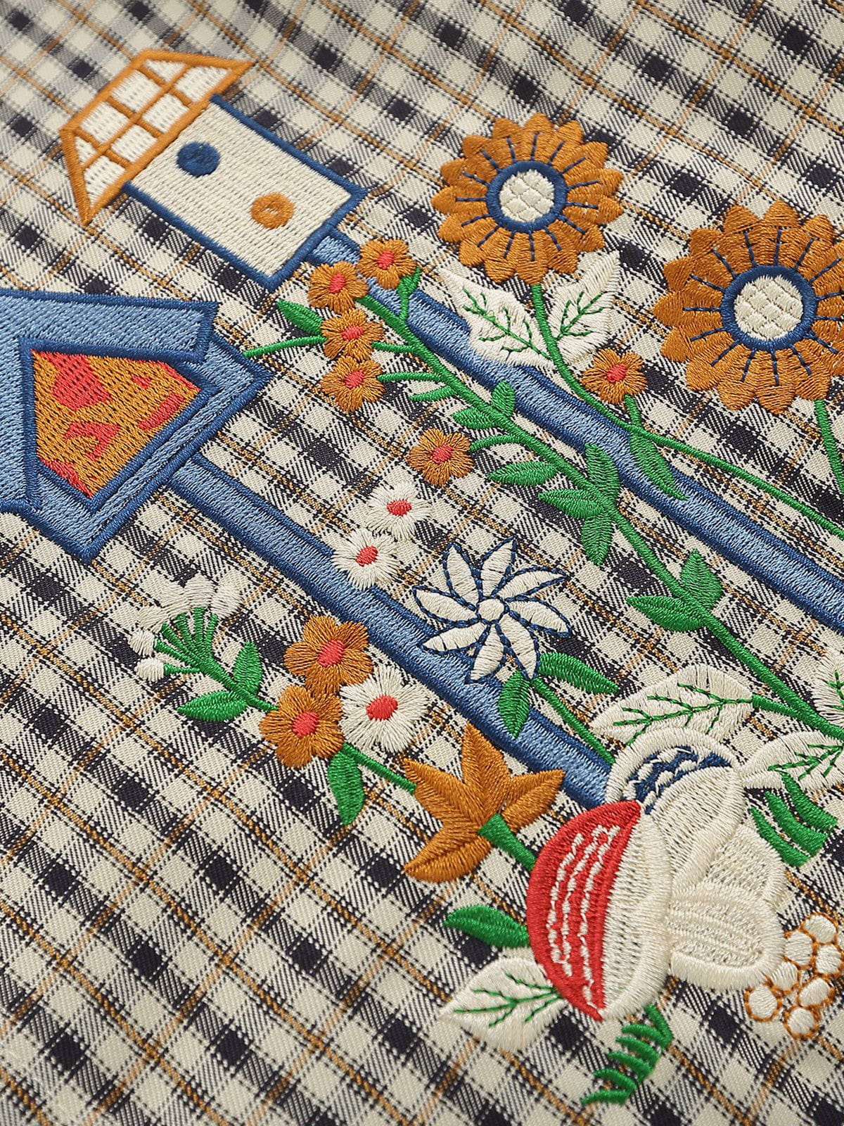 Fvshya Plaid Embroidery Short Sleeve Shirt