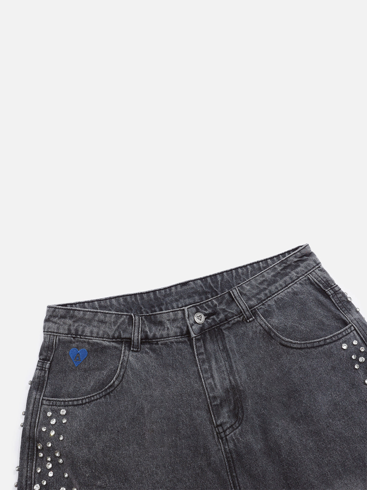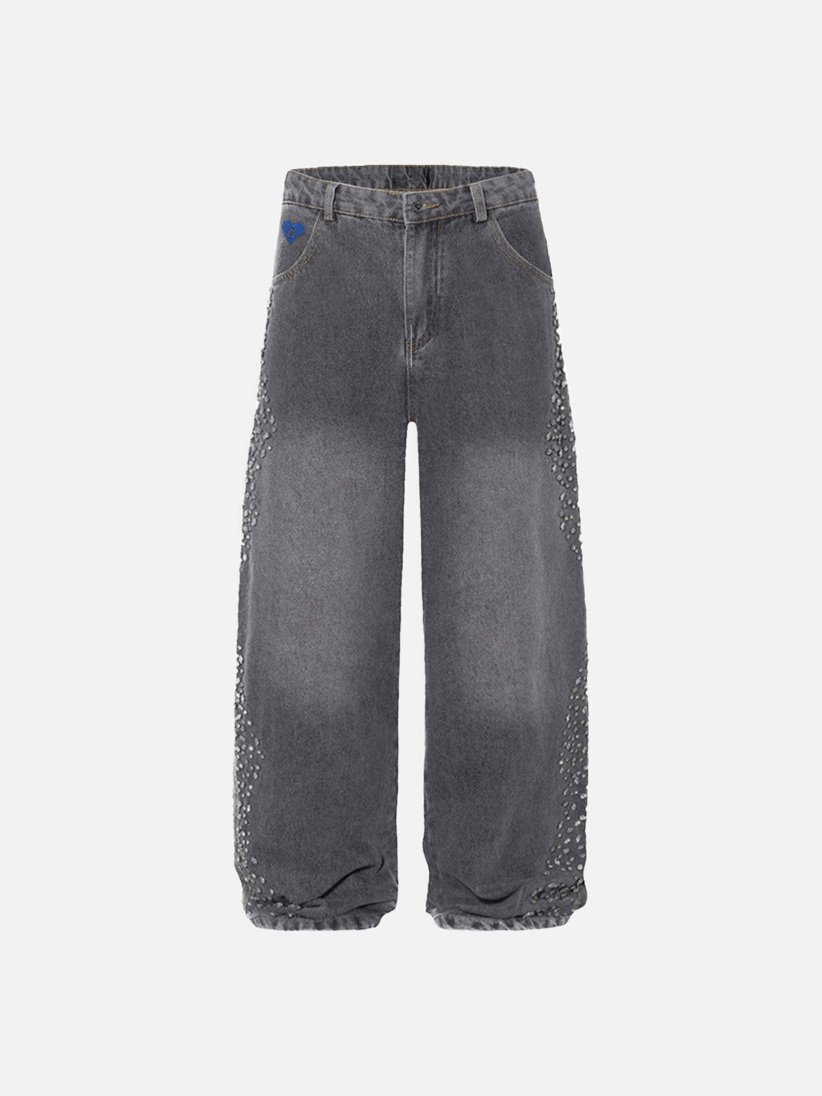 The Side-Embellished Rhinestone Loose Jeans bring a touch of sparkle to casual style with their eye-catching rhinestone details. The relaxed, loose fit ensures all-day comfort while adding a statement-making edge to your everyday look.