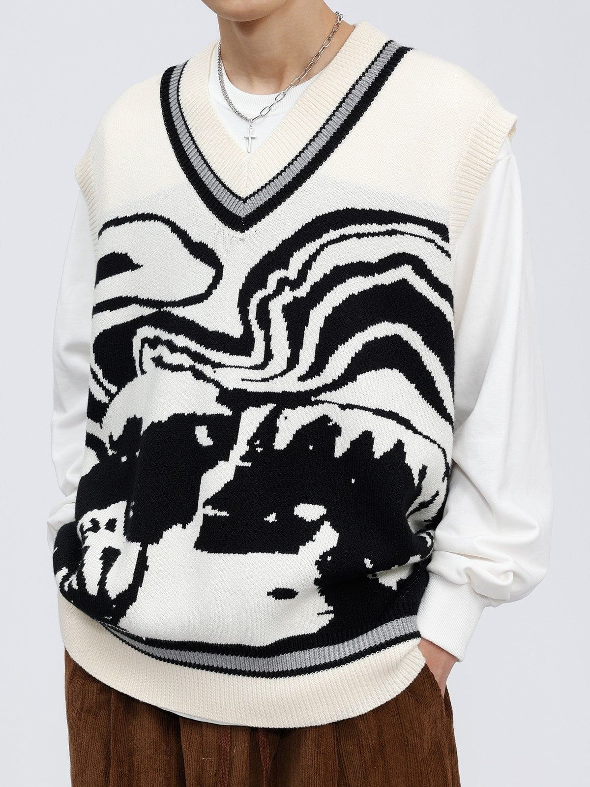 Fvshya Skeleton Portrait Graphic Sweater Vest