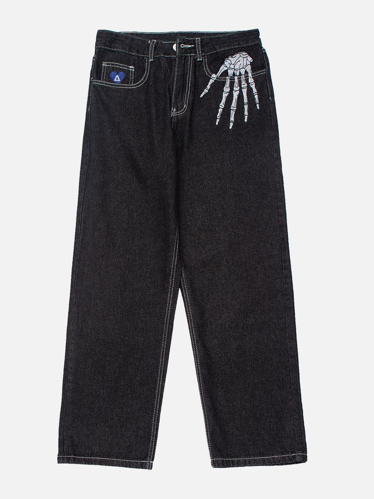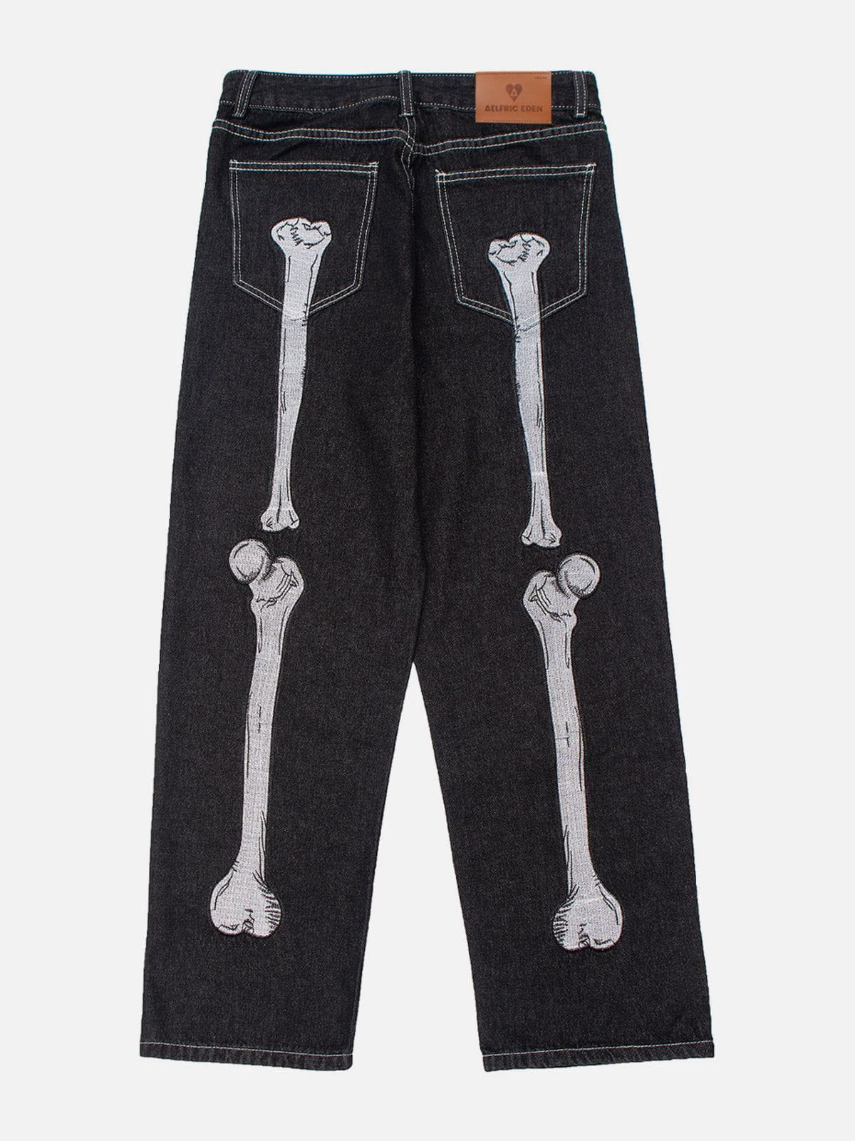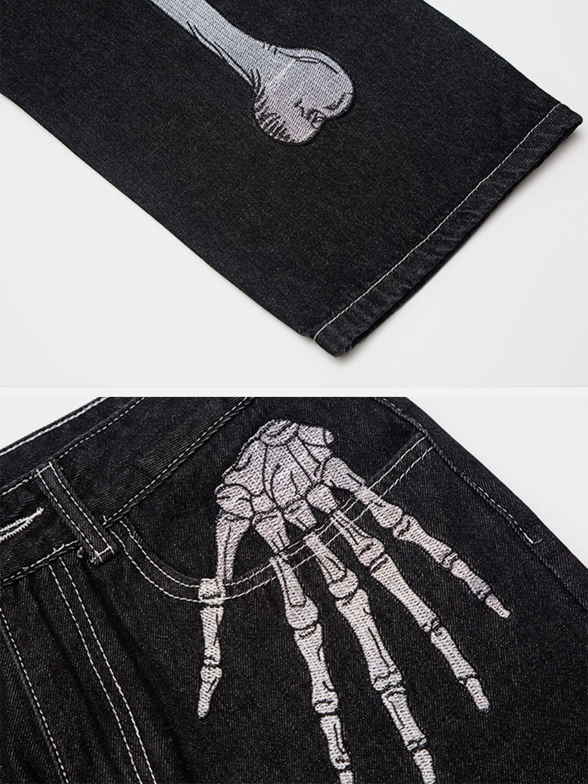 It's time to hit refresh on your jeans inventory! This Vintage Skull Bone Embroidery Jeans brings you a combination of comfort and fashion. The bone pattern on the pants is full of personality and will definitely catch people’s eyeballs and sights on you.