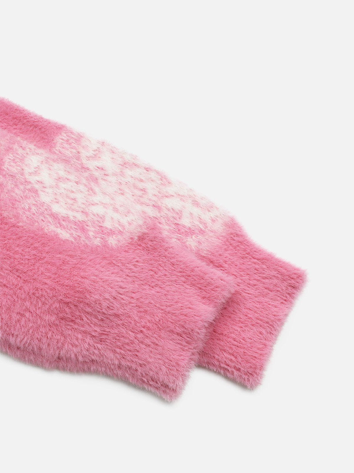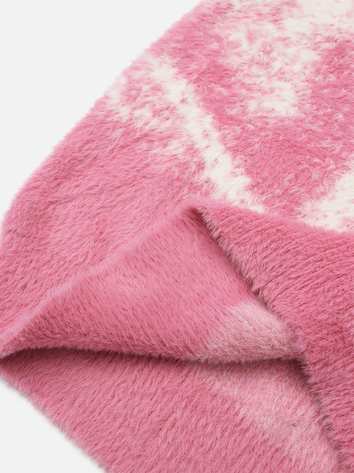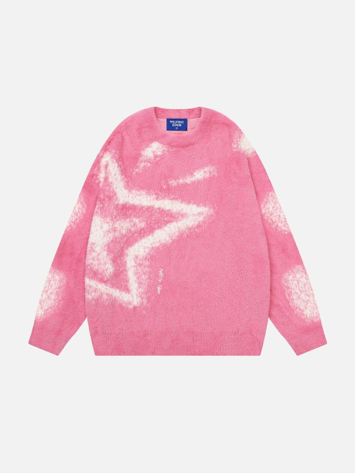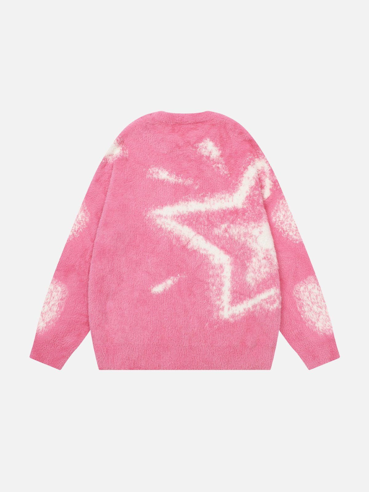 This pink sweater features an abstract star graphic for a bold, playful vibe. It is made from soft, fuzzy fabric that adds warmth and texture. The relaxed fit ensures all-day comfort and effortless layering. This is a standout piece to elevate casual looks.
