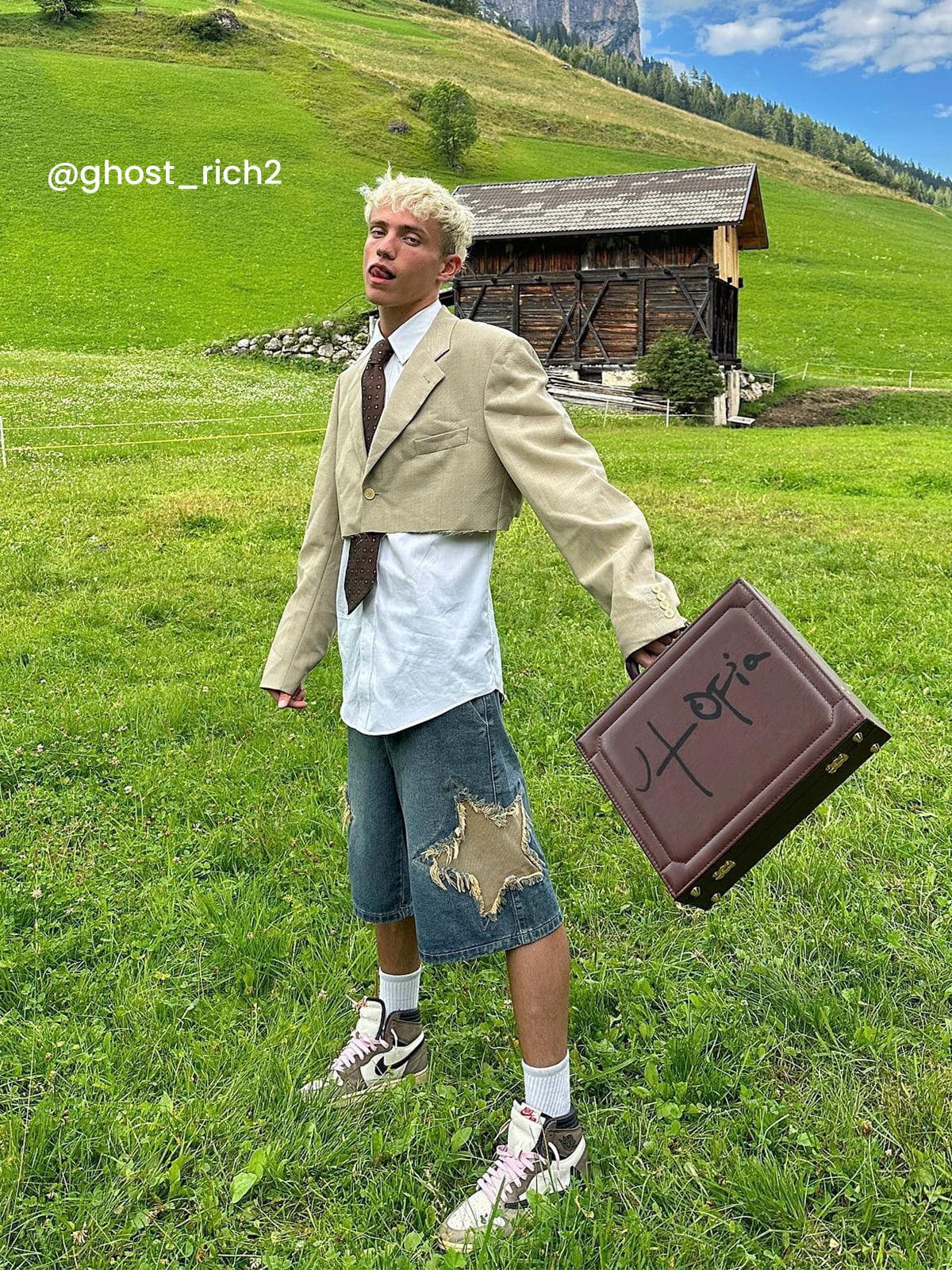 Clothing details: Star Tassel Patch, Gradient, Denim.