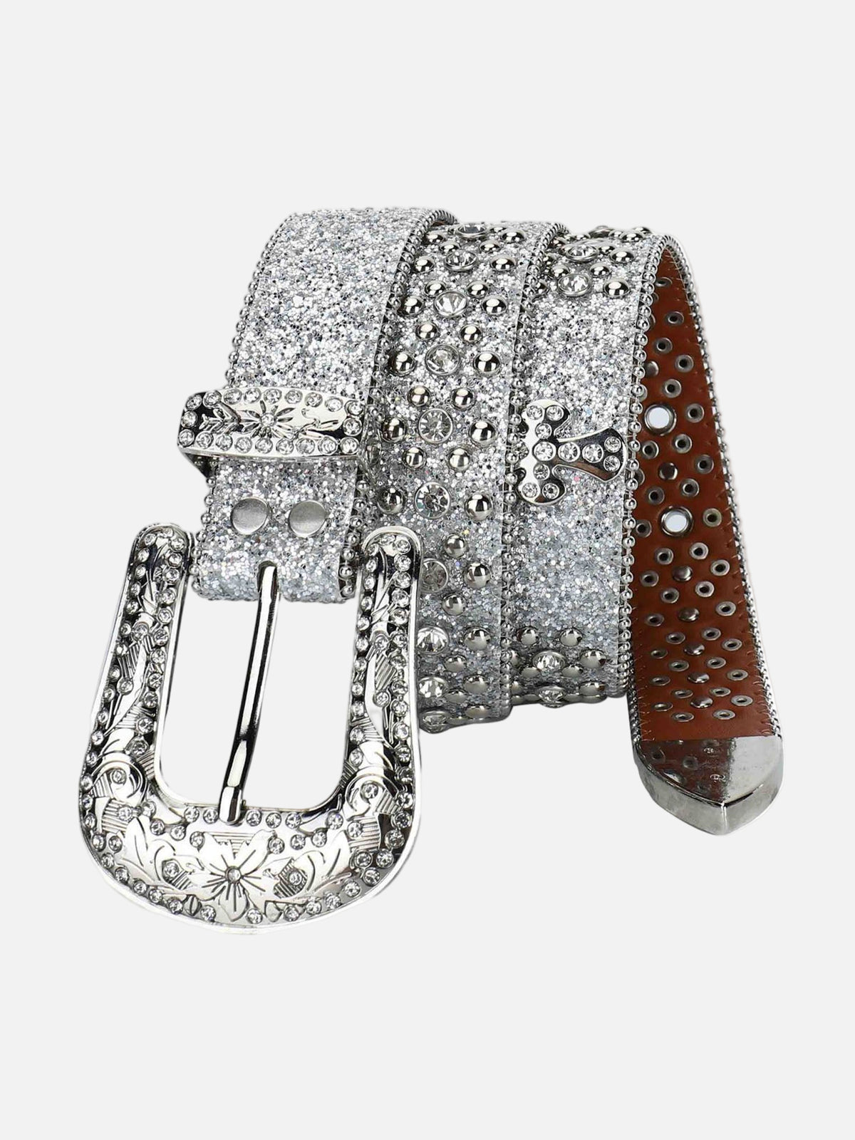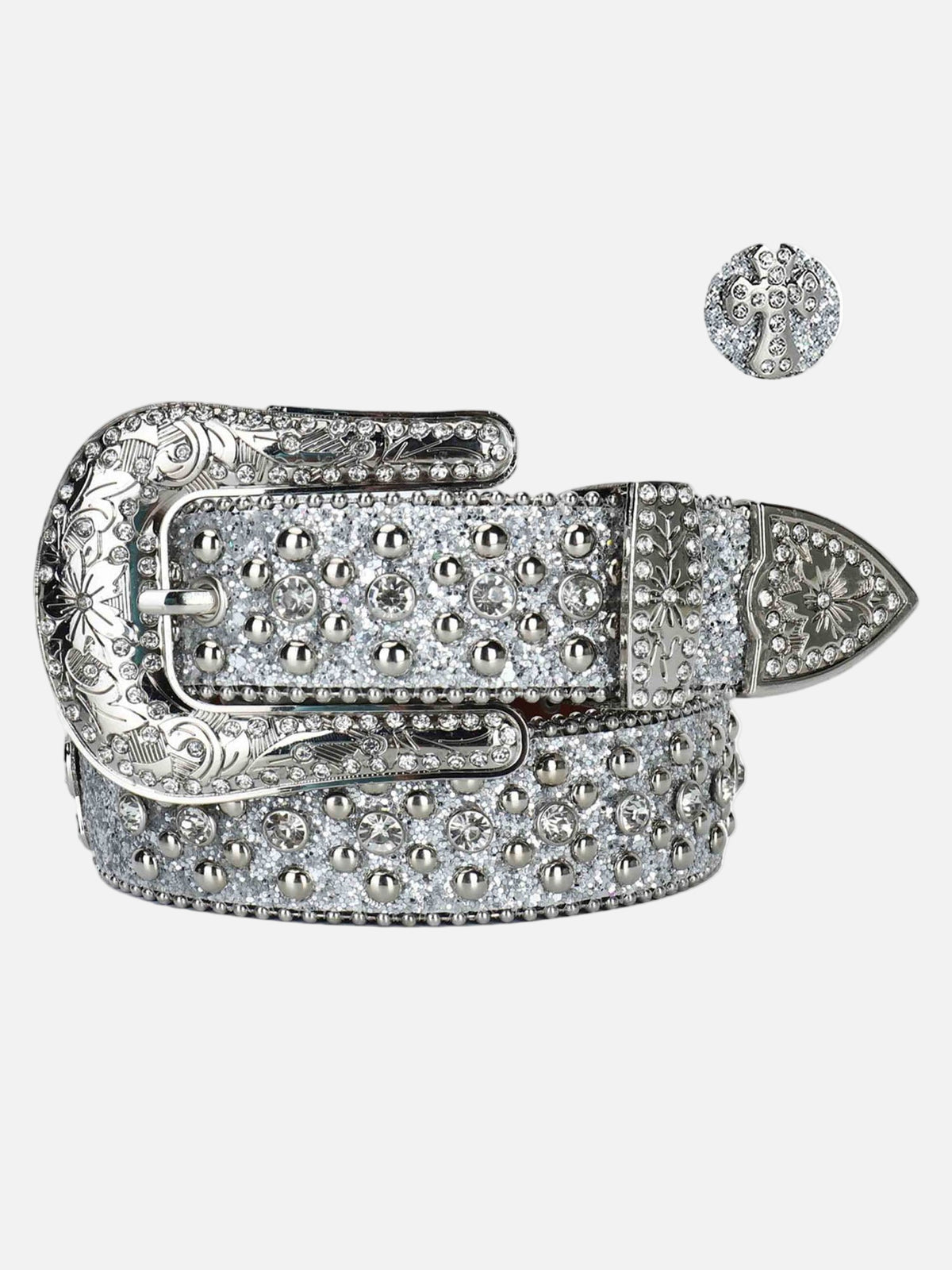 • Detail Features: Rhinestone-Encrusted Buckle, Detailed Stitching, Adjustable Length