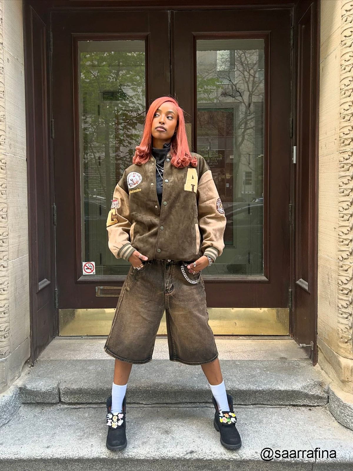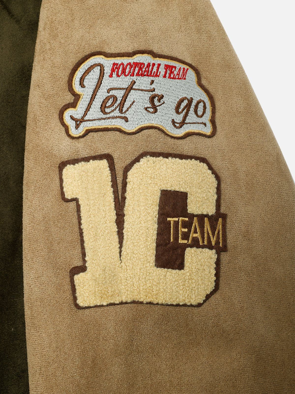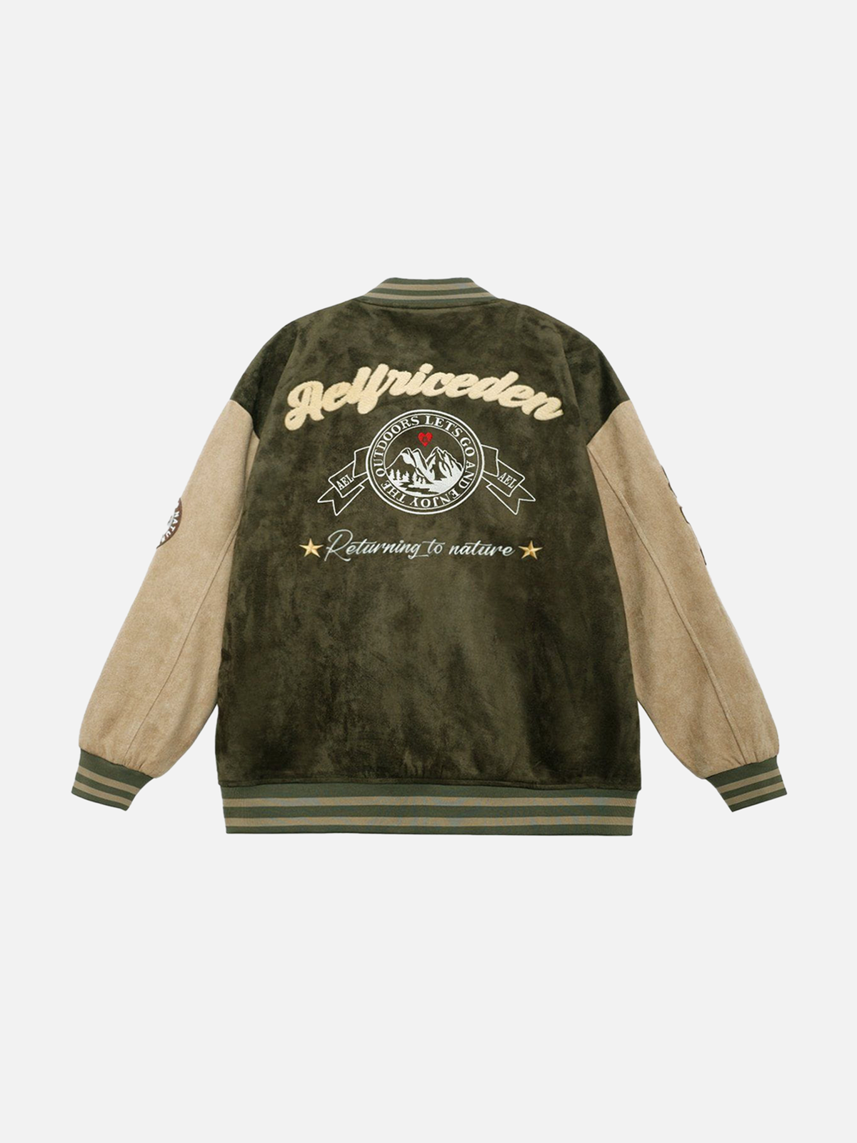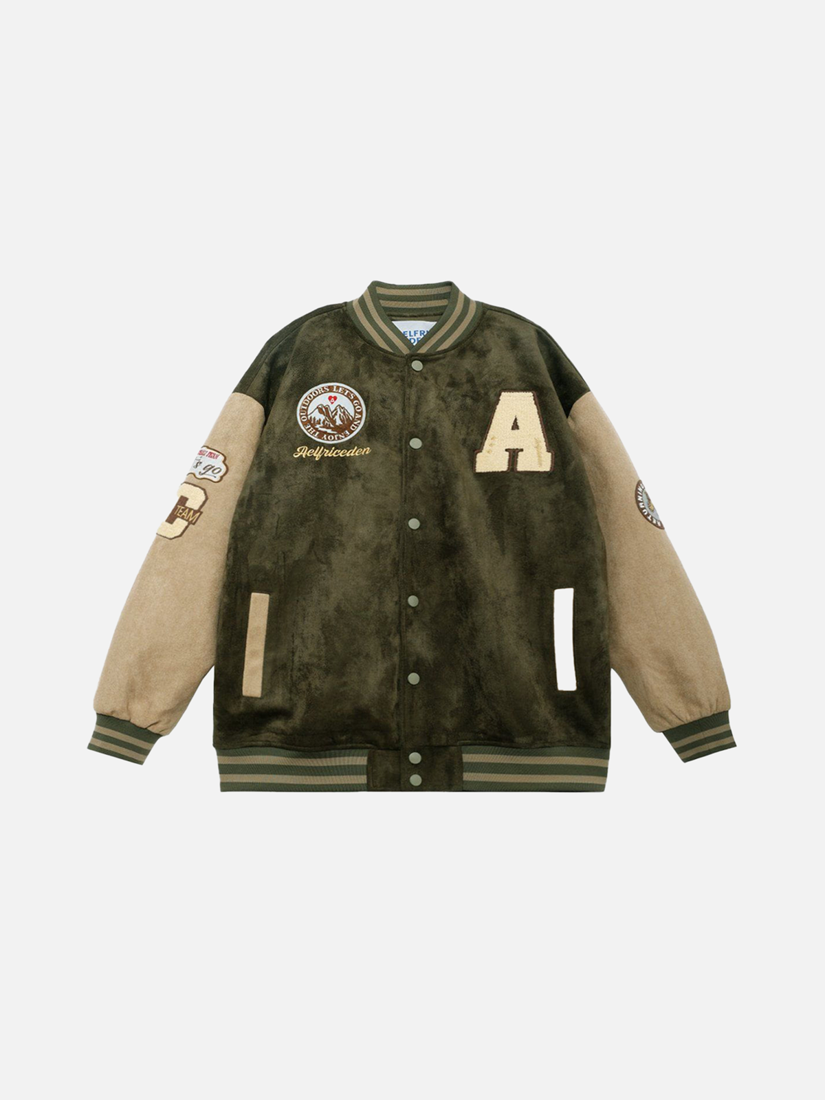 Introducing the epitome of collegiate chic – The Color Block Embroidery Suede Varsity Jacket. Crafted with meticulous attention to detail, this jacket boasts vibrant emblem and intricate embroidery, adding a touch of personality and flair. Made from luxurious suede, it exudes both elegance and urban edge. Elevate your style game with this statement piece that seamlessly blends retro charm with modern sophistication. Embrace the spirit of youthful exuberance and timeless fashion with this Jacket.