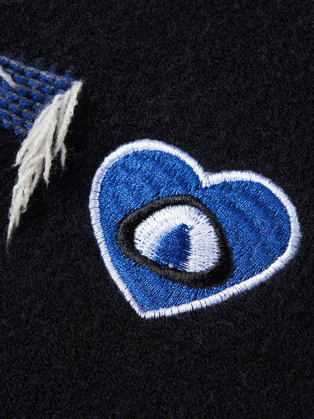 Sail into Style with our Miracle Sea Distressed Cardigan! This black cardigan, featuring intricate blue patches and stylish fringe detailing, captures the adventurous spirit of the Miracle Sea. The design is full of character, with our Heartie embroidery on the chest and distressed edges adding a touch of rugged charm. Perfect for those who dare to blend fashion with the mystique of ancient legends.