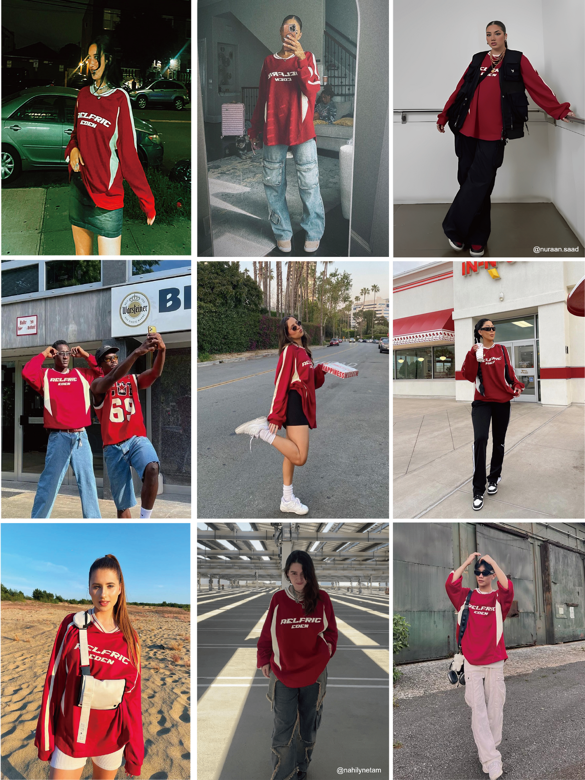 Like a bright red sun, this sweatshirt perfectly combines retro and street style. The unique collage design is like an artist's creative graffiti, injecting vigor and vitality into the classic red, green and purple.. Wearing it, you feel as if you are in the bright streets of the city, or the idyllic scenery of the quiet countryside. This is not just a sweatshirt r, but also a picture full of passion and confidence. Whether paired with jeans for a casual look, or paired with sweatpants for a dynamic look, you can find your own unique style in it.