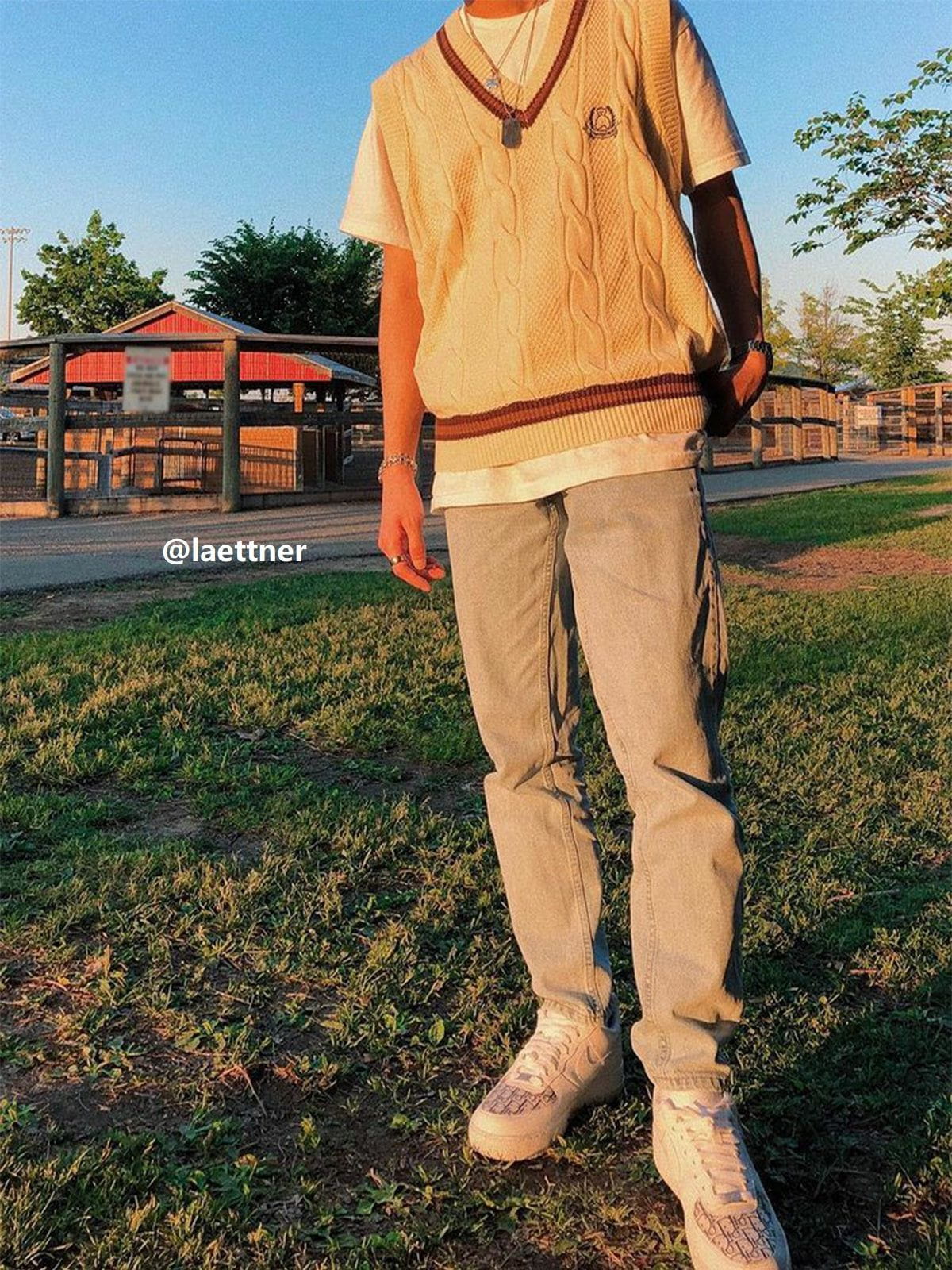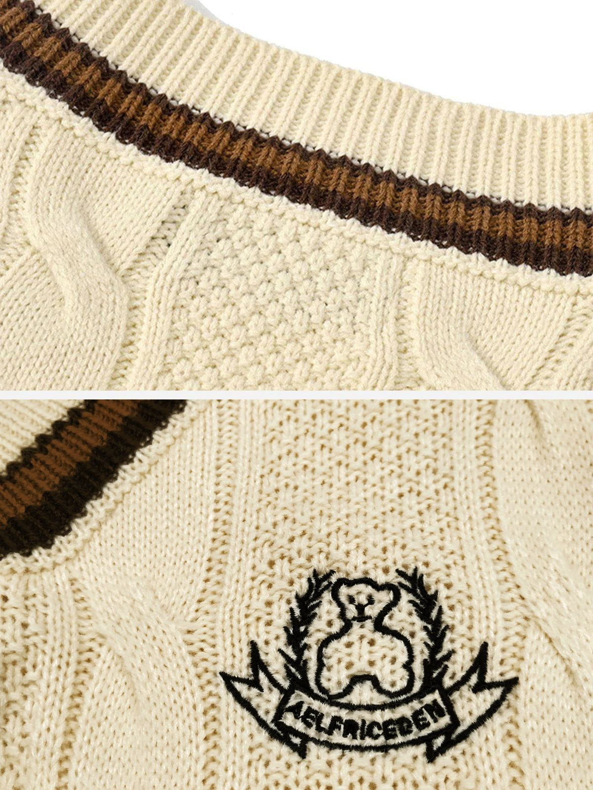 Fvshya Vintage Preppy Style Knit Sweater Vest