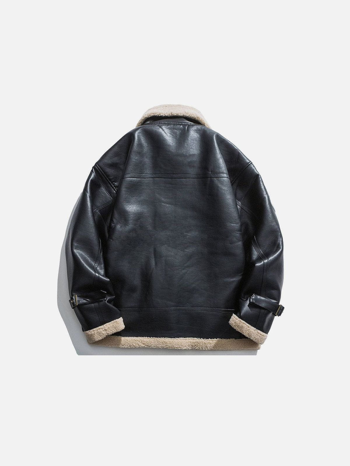 Fvshya Zipper Lapel PU Borg Jacket