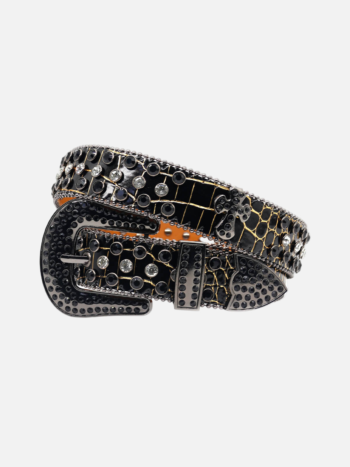 Fvshya Punk Style Leather Hotflix Rhinestone Belt
