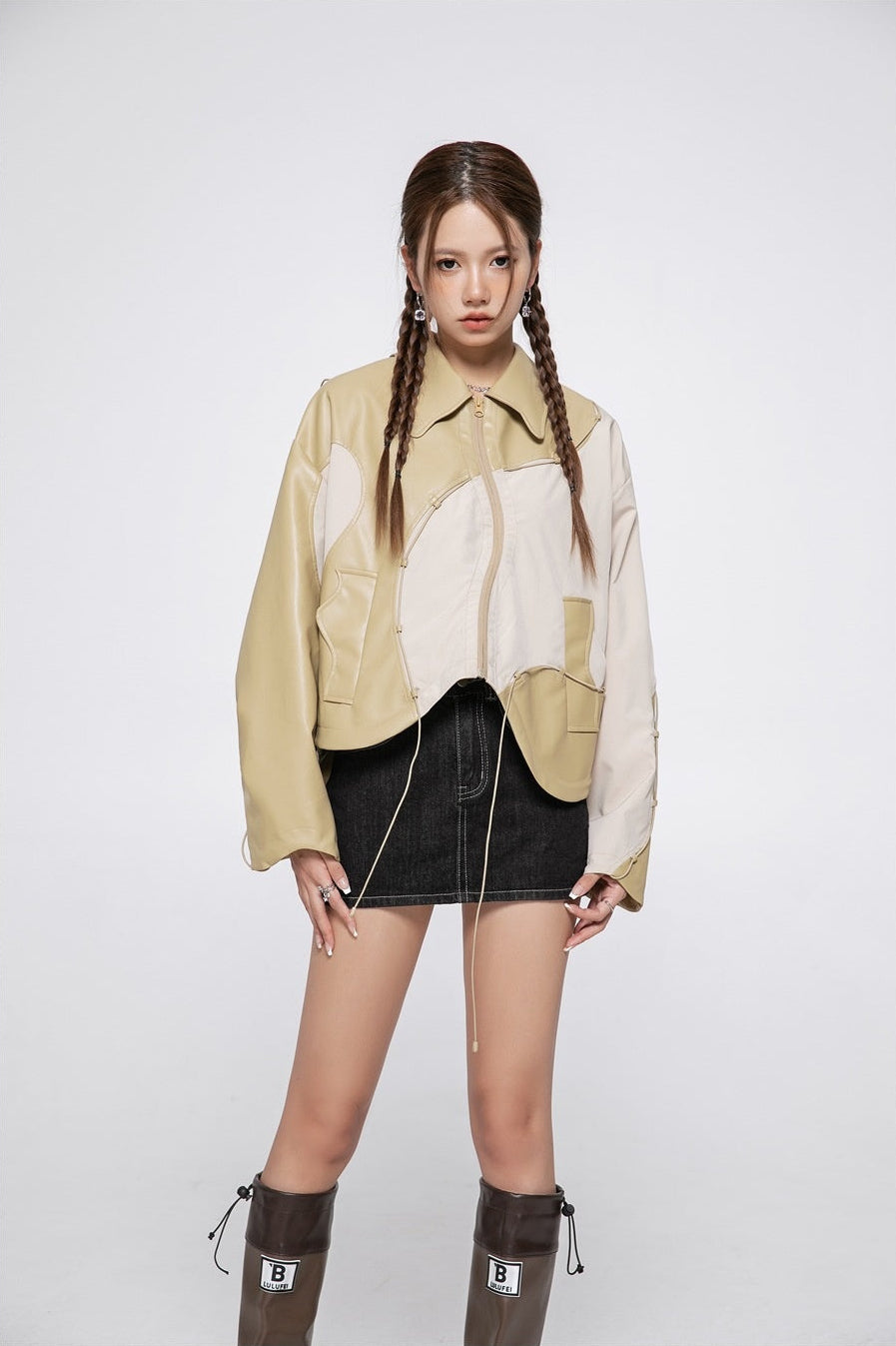 Fvshya "Street Star" Irregular Patchwork Leather Jacket