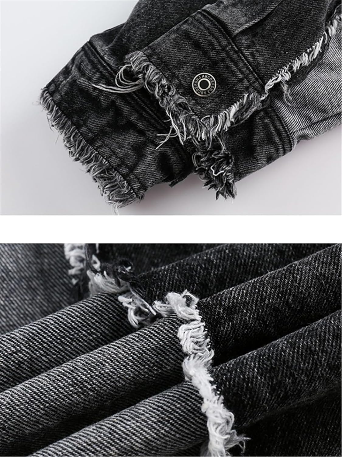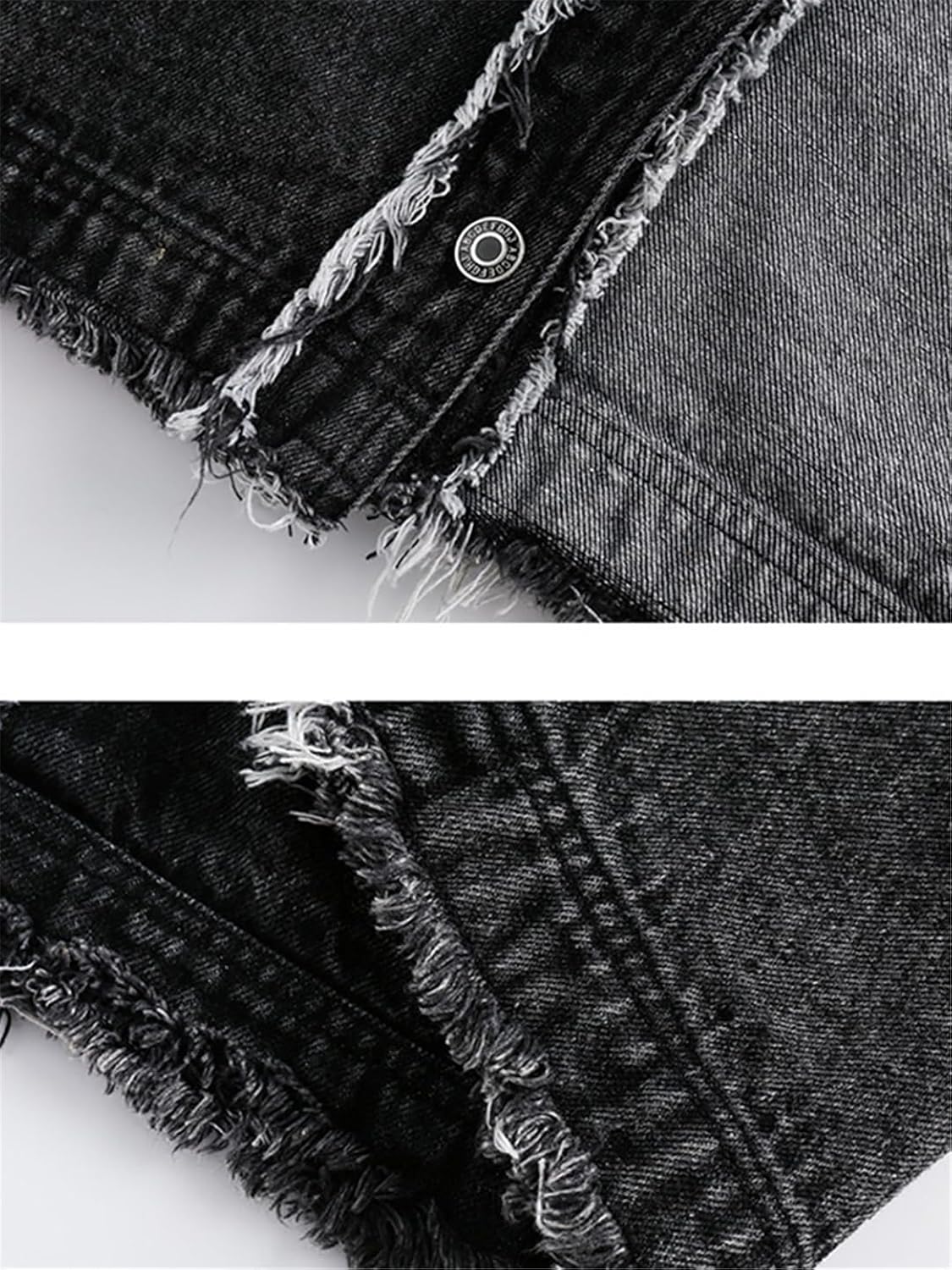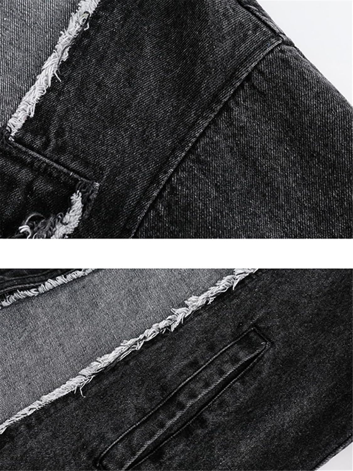 Fvshya "Street Star" Patchwork Black Denim Jacket