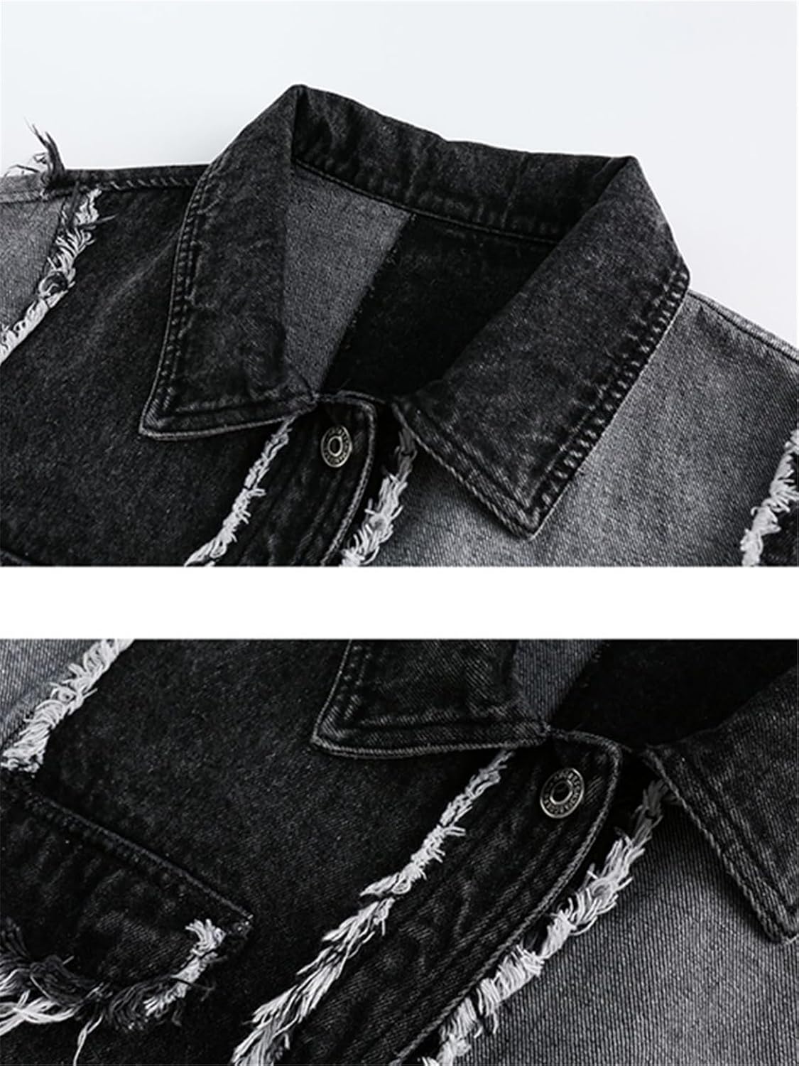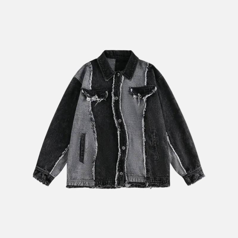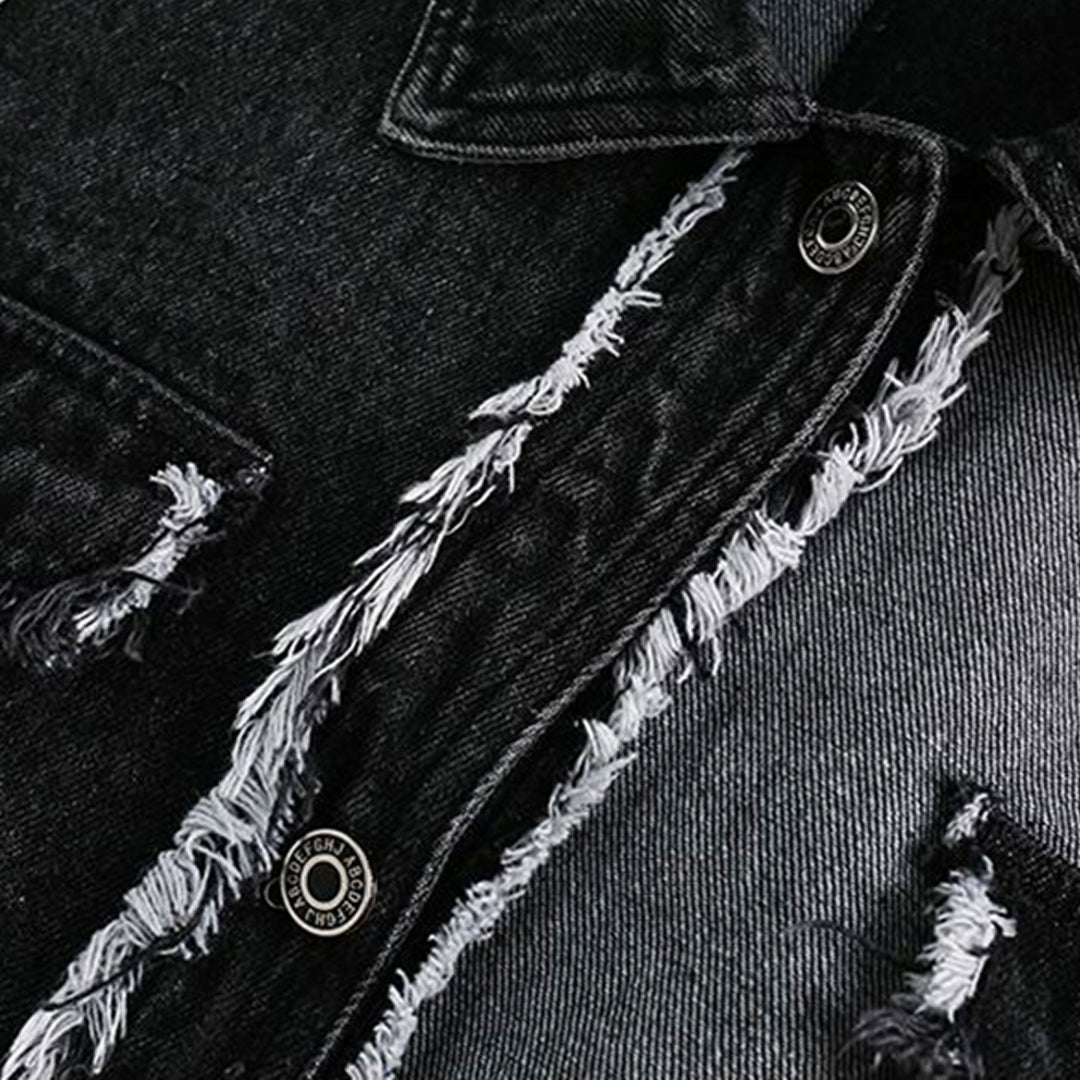 Fvshya "Street Star" Patchwork Black Denim Jacket