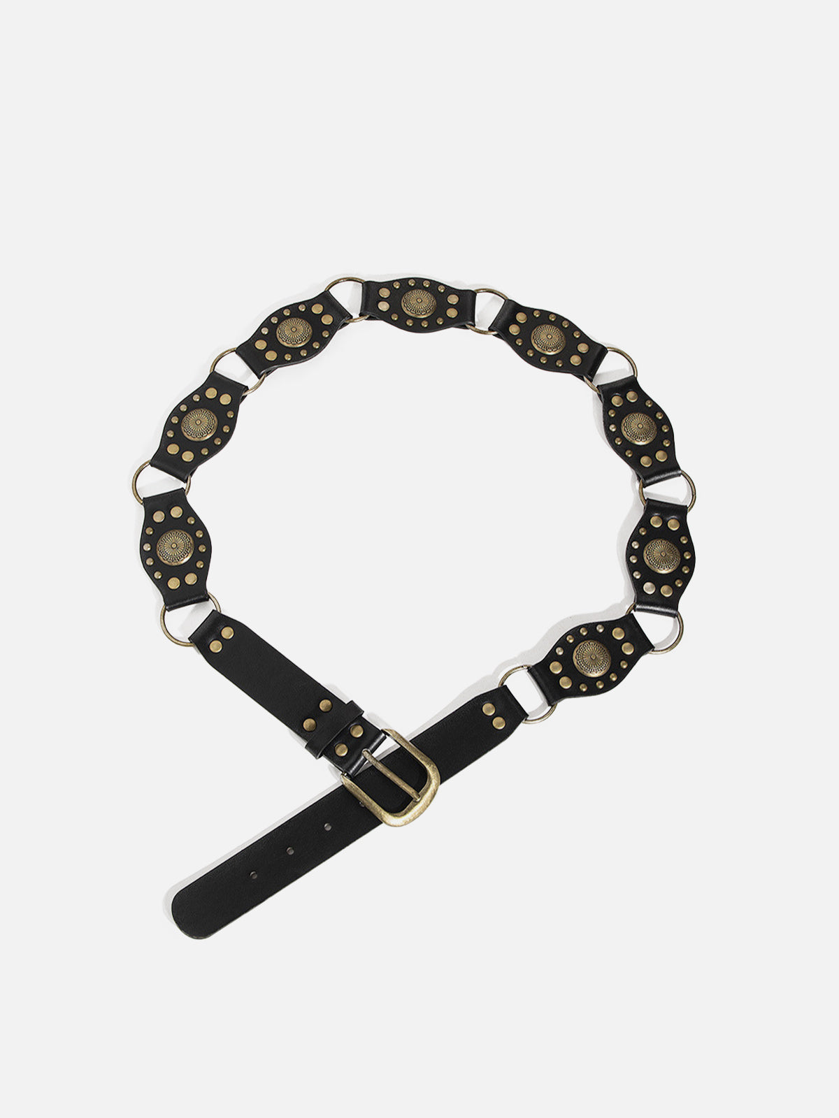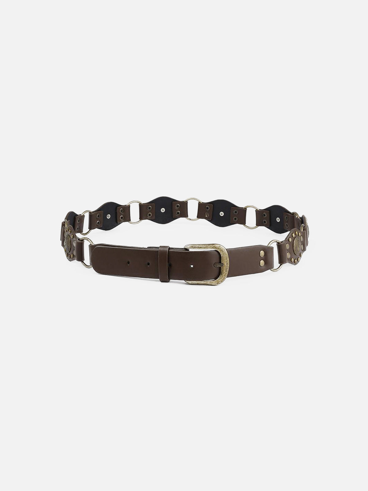 Crafted from faux leather with intricate cutout details and stud embellishments, this belt is a statement piece. Whether you're rocking a street-retro, denim vintage, or boho-chic look, it adds the perfect finishing touch.